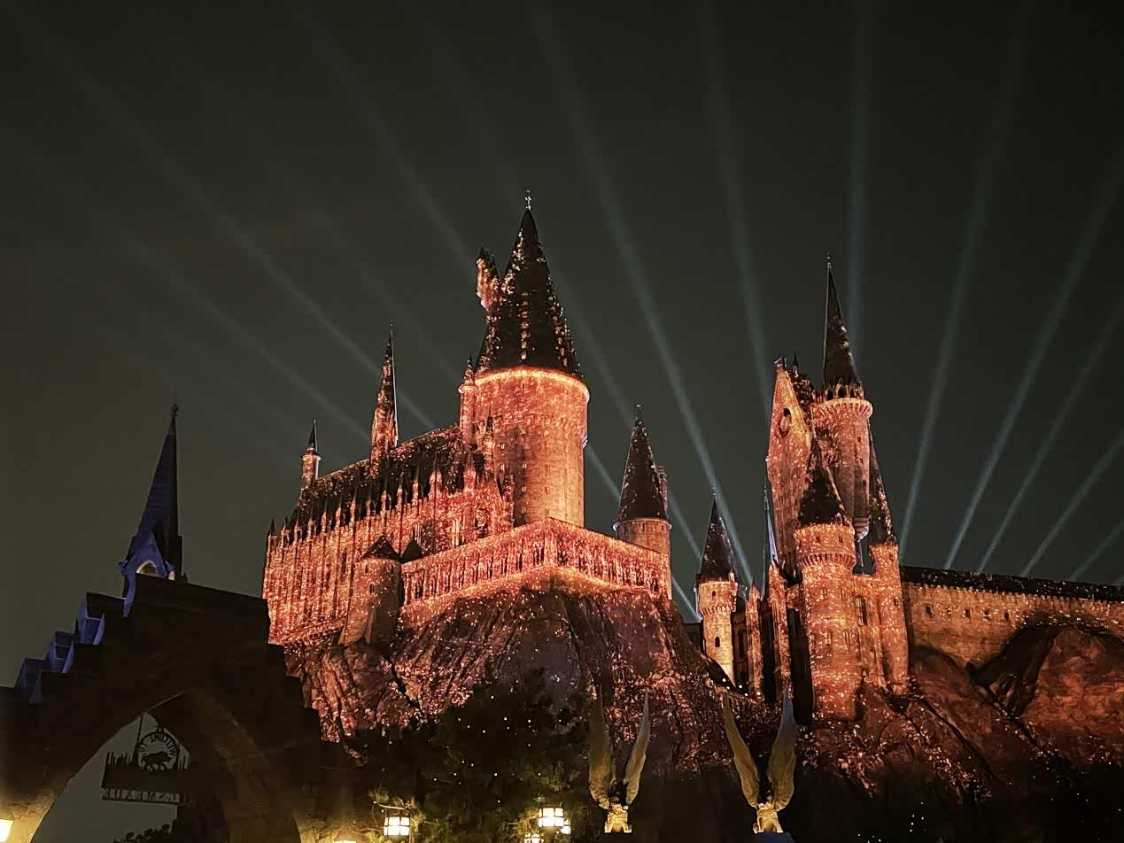 过了园区的验票通道,我和老婆第一时间奔向了哈利波特的主题乐园,进入园区氛围感十足,感觉自己不再是“麻瓜”,通过入口处的9又4分之3的火车站台后,自己也拥有了魔法。