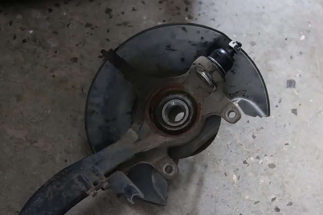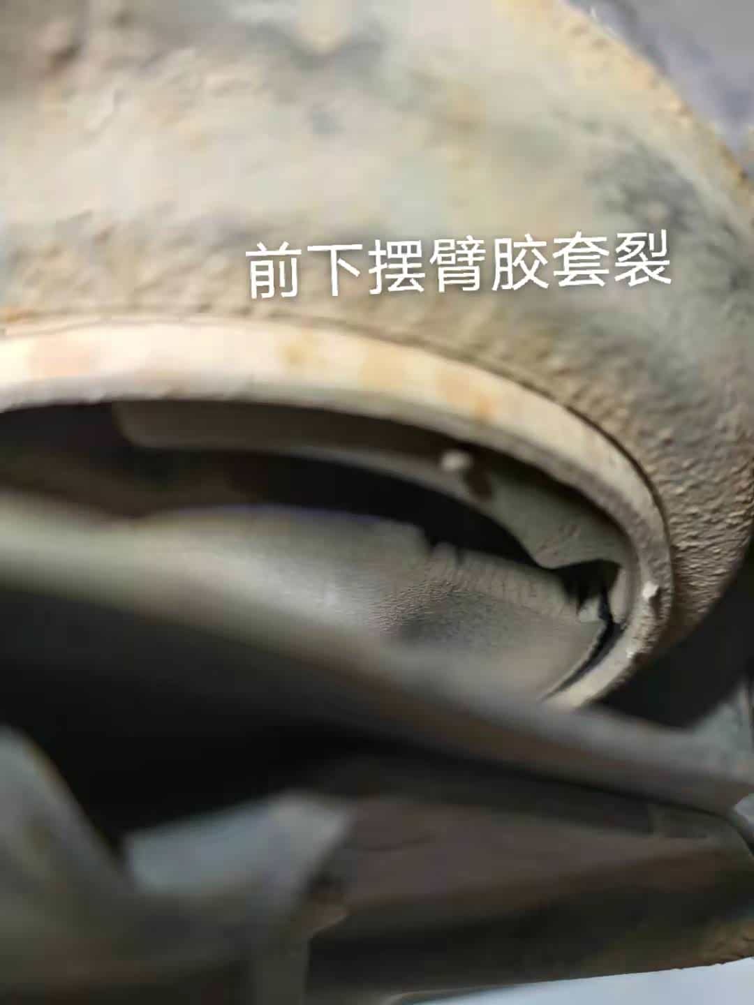 前下摆臂胶套断裂,老化造成的,日系车的底盘都是橡胶胶套,非常禁不住老化。