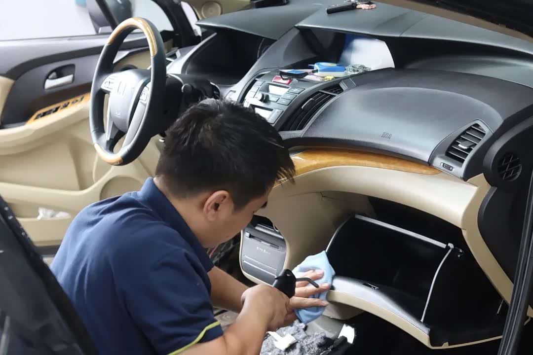 拆下来的整车内饰覆盖板,全部清洁养护一遍。