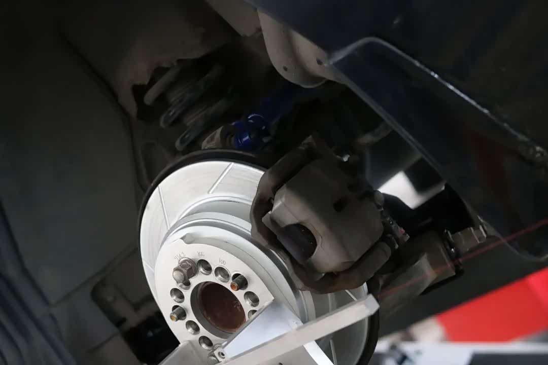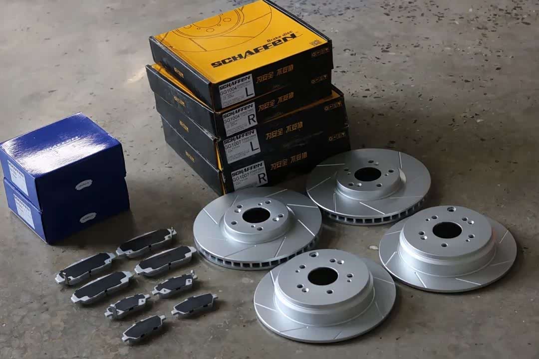 接着到制动系统更新,这辆车刹车非常不灵敏,而且还抖动,我们选择升级一套刹森制动盘、皮,比较信得过的国产产品,效果不错,性价比高,服役到这车退休绰绰有余!