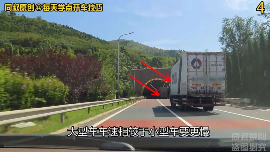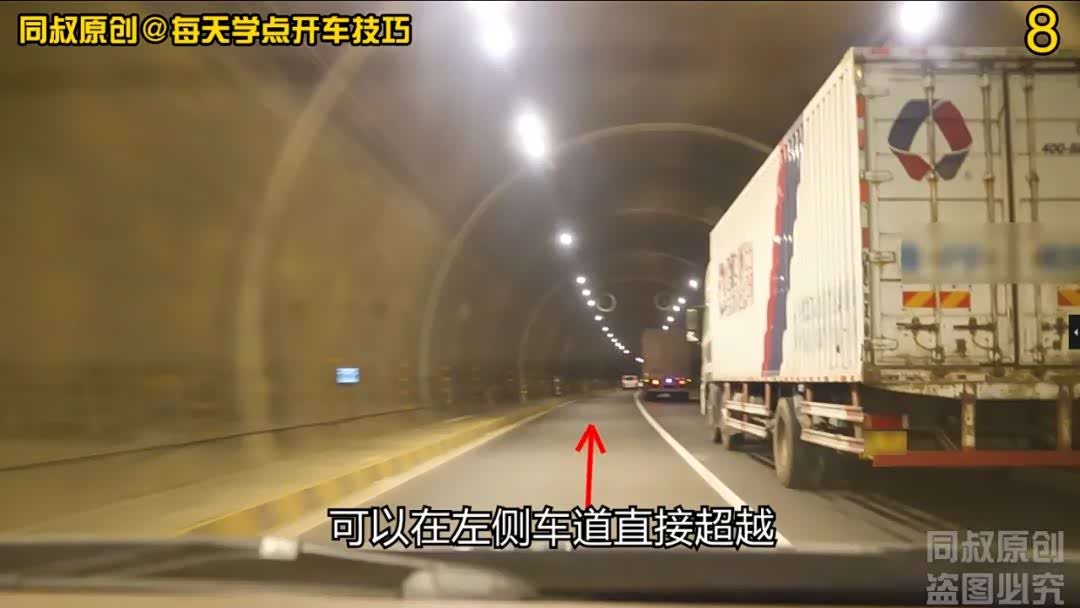 第四,隧道超车。隧道内不能变道超车,但可以在各行其道的前提下超越。在判断大货车行驶轨迹稳定的前提下,可以在左侧车道直接超越,无需打左转灯也无需闪远光灯。在隧道内,光线照射比较聚光,前车最反感的就是远光灯照射。所以,在前方200米范围内有车辆的情况下,不要使用远光灯,防止激起前车司机路怒。