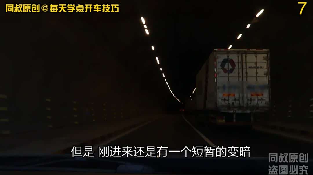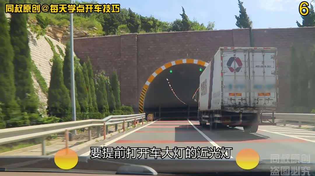 第三,灯光前置。在进入隧道前,可以看得出,隧道内光线比较暗,要提前打开车大灯的近光灯。之所以提前打开,就是避免在进入隧道光线变暗的那一刻,你再临时去找车灯开关,时间上滞后,也容易造成慌乱。因为此时注意力分散,万一在前方隧道的黑暗中有车辆突然减速,容易导致追尾事故。