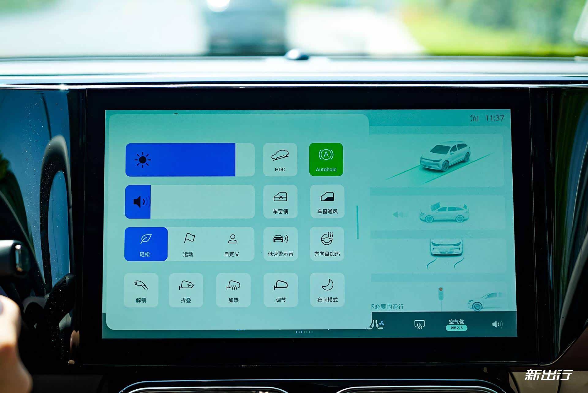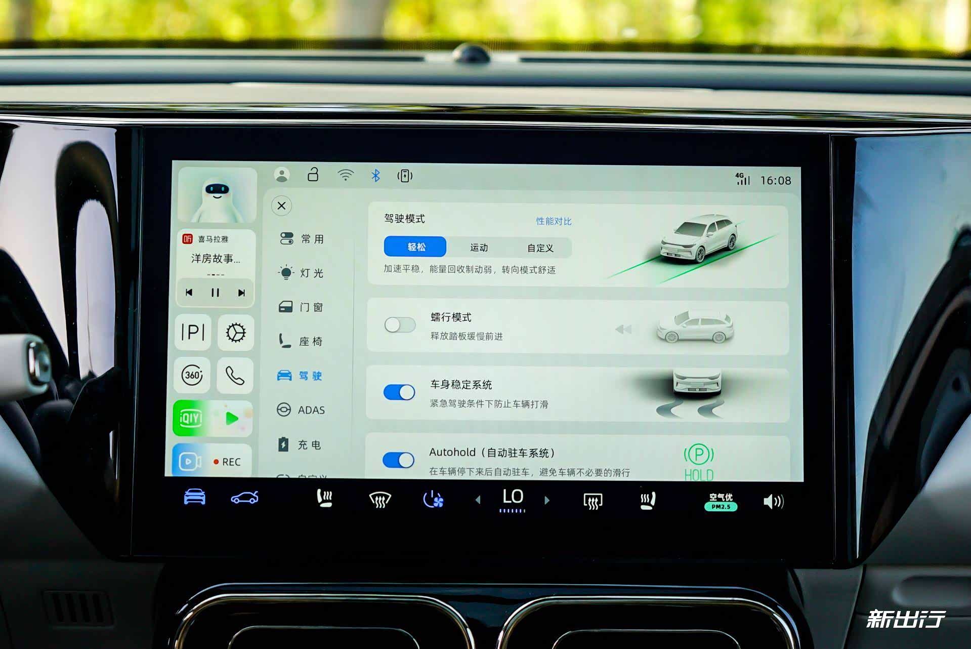 继续往下就是驾驶模式的设置,C11 提供轻松、运动和自定义三种驾驶模式。同时,在这里也可以设置蠕行模式和车身稳定系统以及 Autohold 系统。