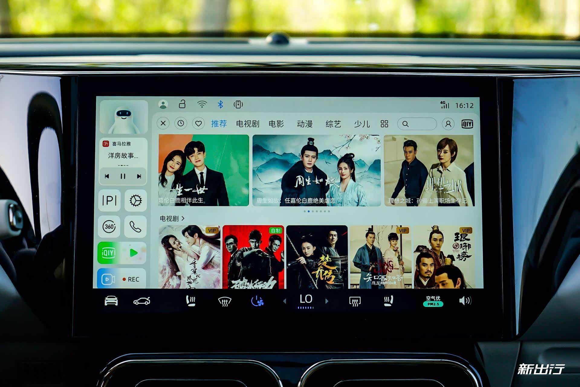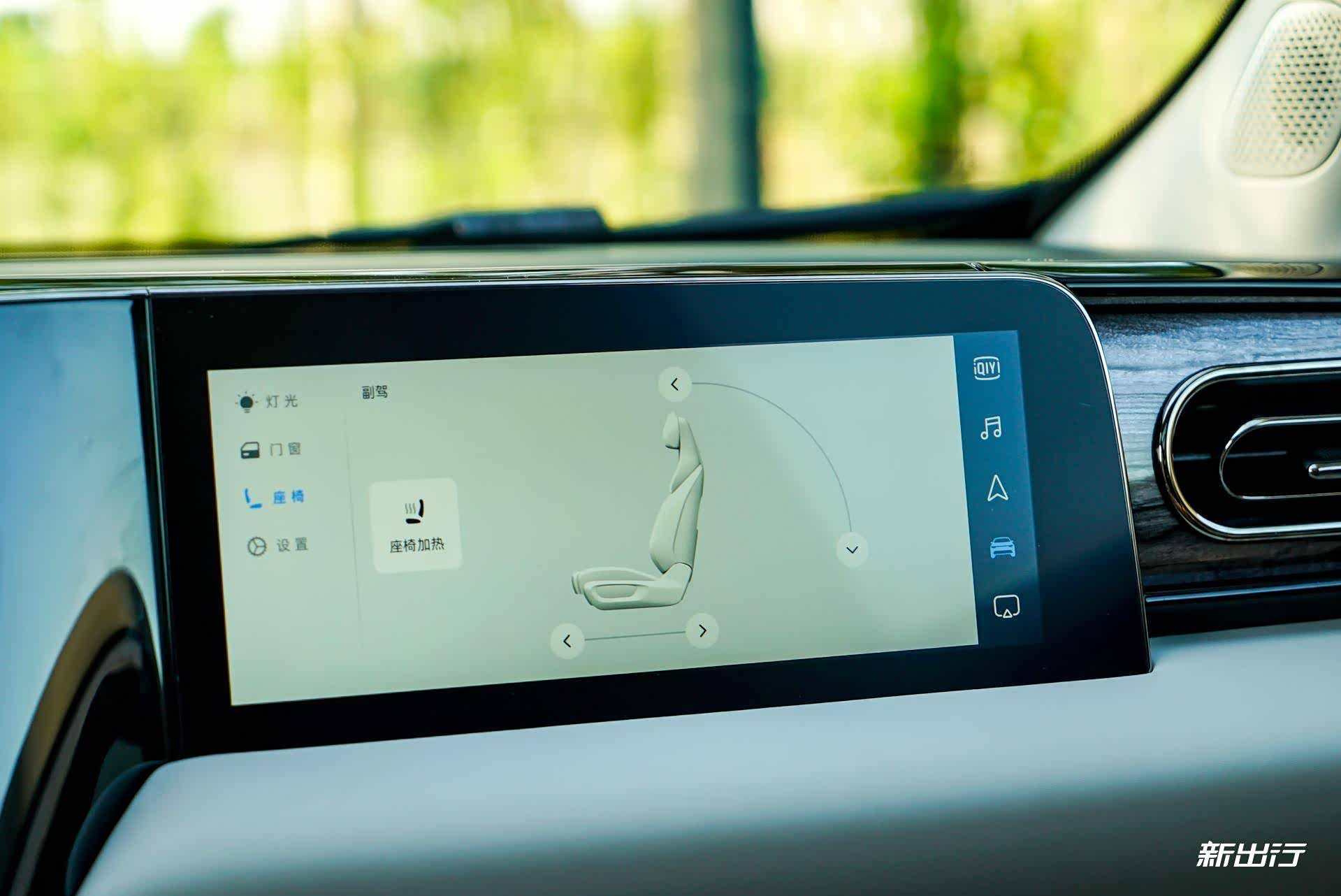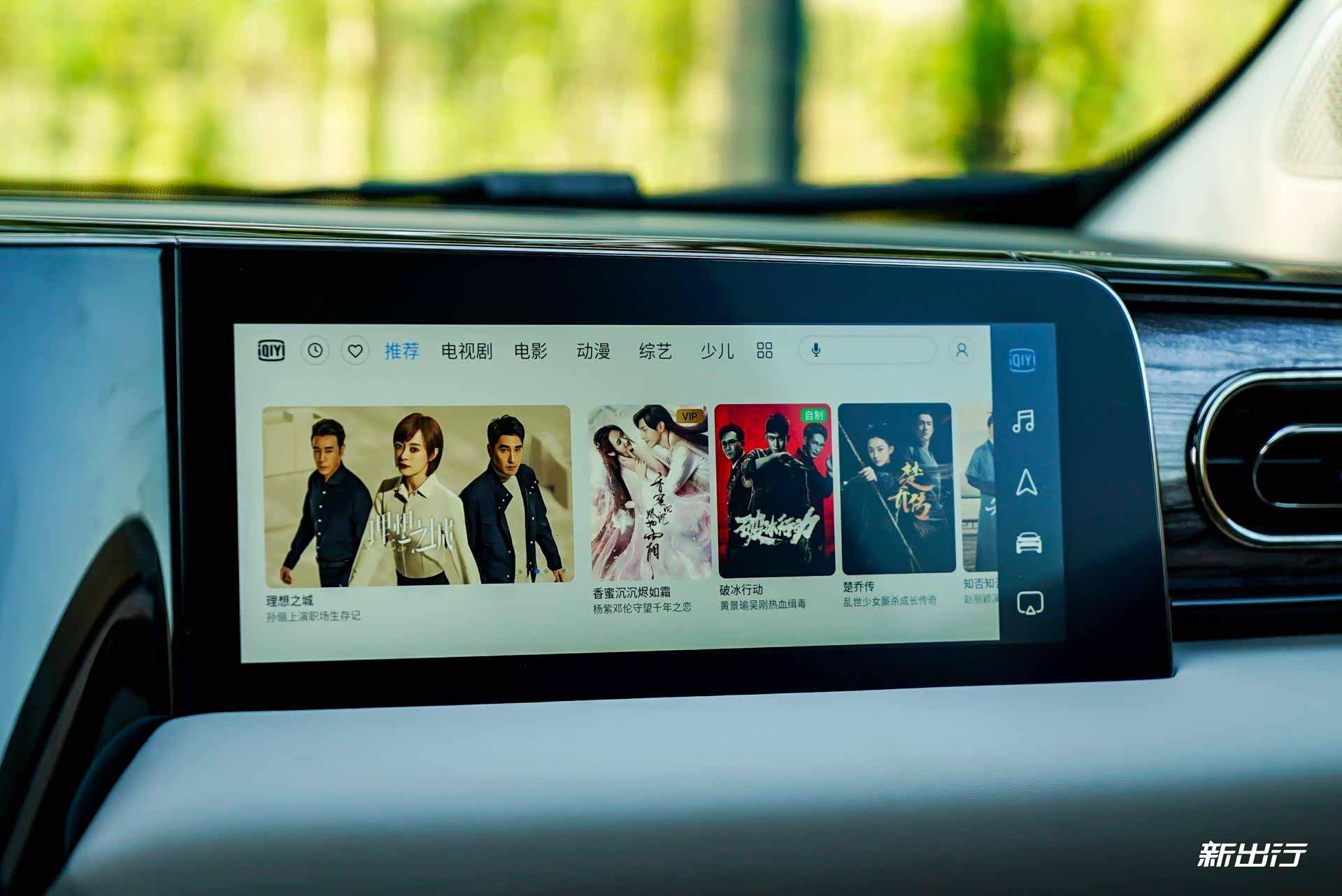 副驾娱乐屏的固定栏被放置在右侧,从上到下分别是爱奇艺、音乐、地图、设置和投屏。