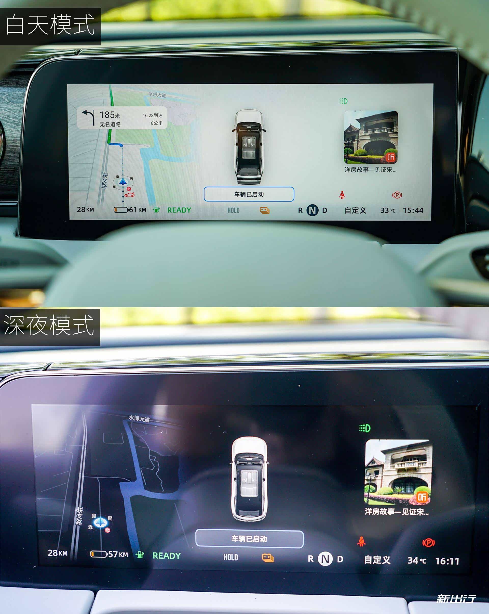 其中,液晶仪表屏支持驾驶信息、导航和音乐等连屏显示,并且支持白天模式和深夜模式这两种模式,信息显示很直观明了。