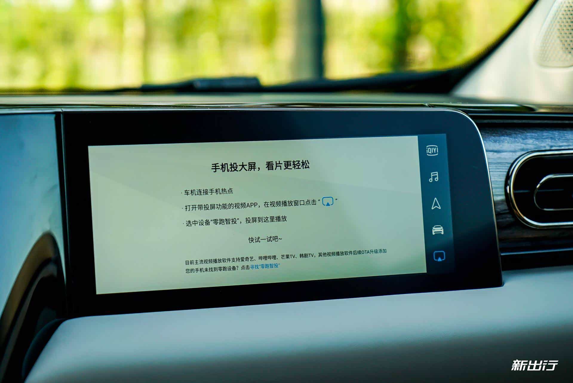 除此之外,副驾娱乐屏还有一个“投屏功能”,在手机连接热点后,打开带投屏功能的视频 APP,在视频窗口找到投屏功能选中设备“零跑智投”是可以投屏的。目前支持爱奇艺、哔哩哔哩、芒果 TV 等APP,后续会 OTA 支持更多设备。