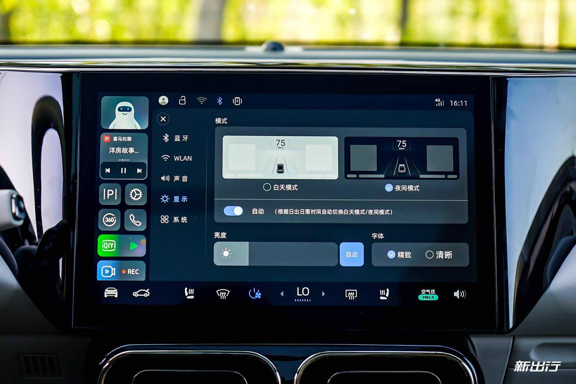 所以 C11 的中控大屏在 UI 布局上相对来说是比较清晰的,把常用的非车辆设置功能集成在左侧固定功能栏上,把关于车辆设置的更多的则是集成在底部固定功能栏上。
