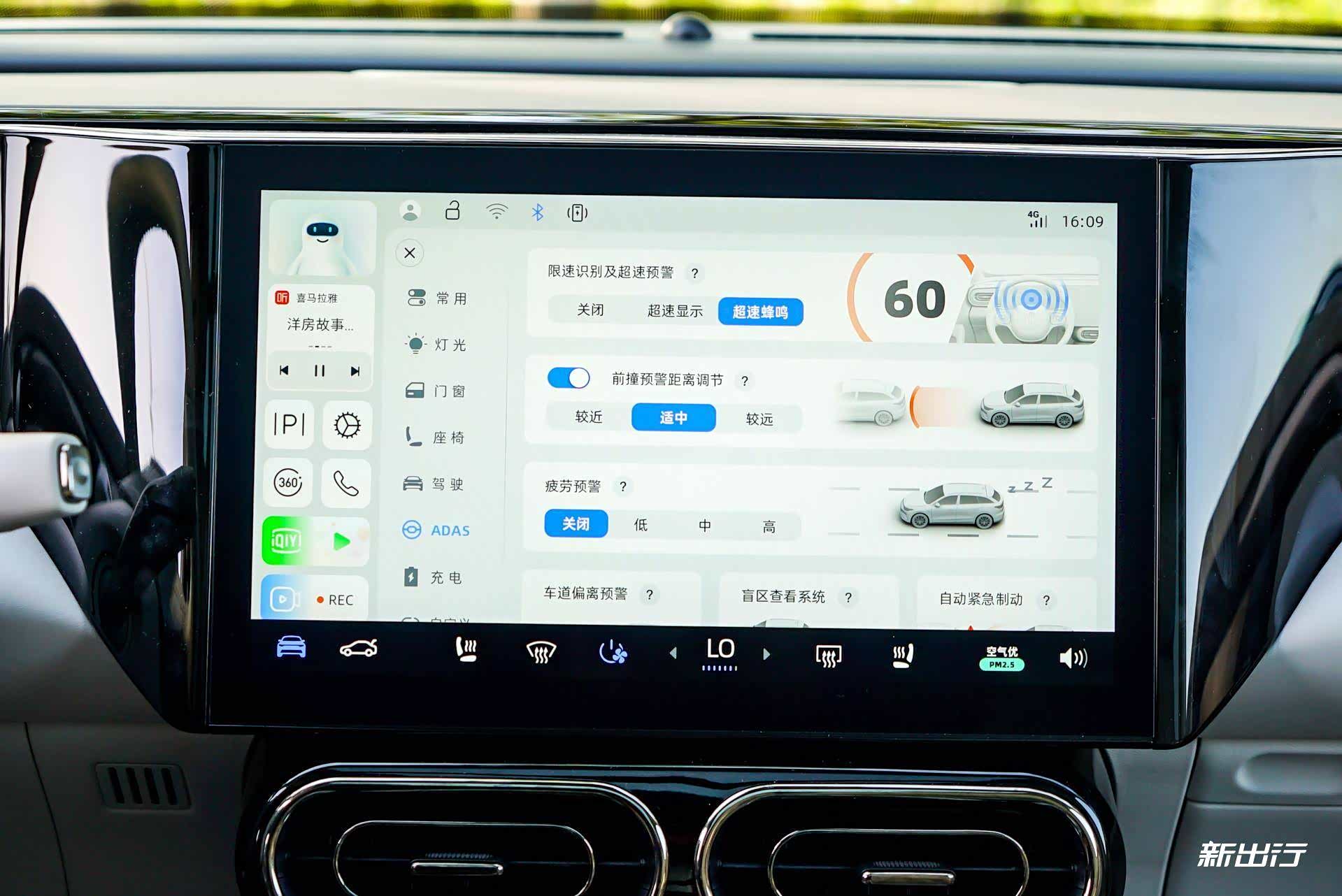 在 ADAS 设置里面针对的则是辅助驾驶系统的设置,目前仅开通了限速识别及超速预警以及前撞预警距离调节、疲劳预警、车道偏离预警以及自动紧急制动。