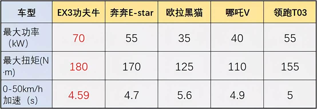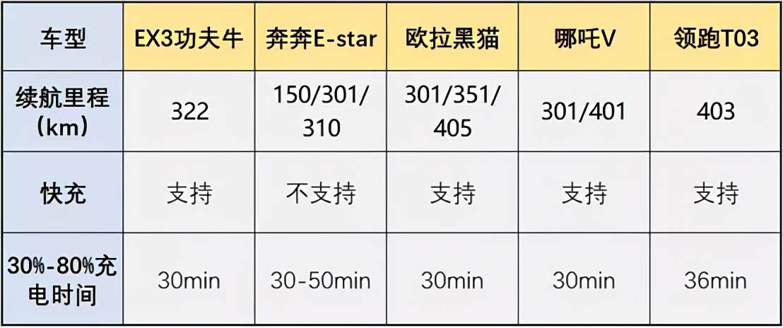 经过对比我们不难发现,EX3|功夫牛在空间、续航、动力、安全等方面的表现,都较同类车型有更优秀的表现,在售价与同级车相差不大的前提下,其综合产品价值自然就更为突出了。
