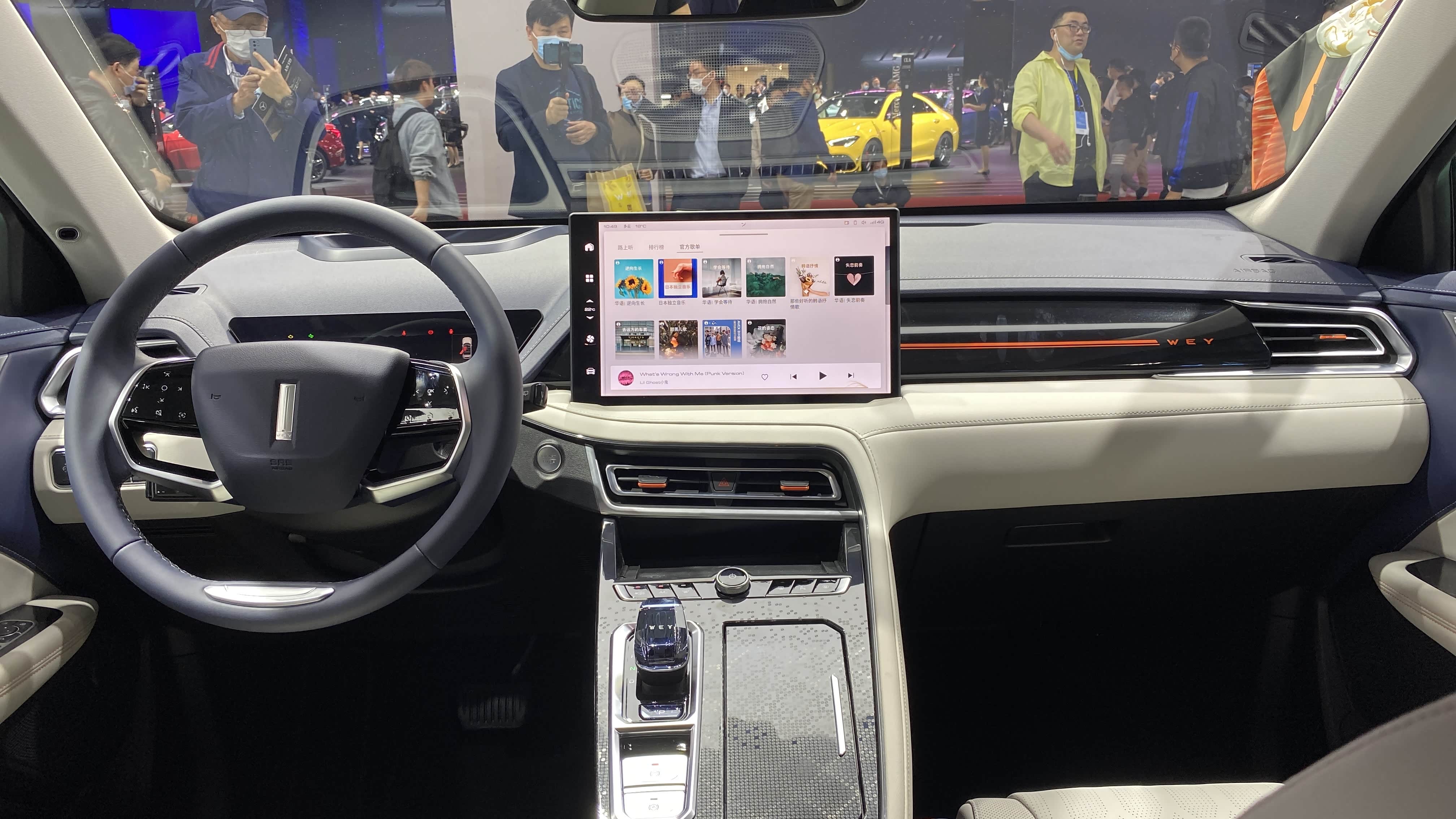 内饰方面,以WEY-S概念车为原型,塑造出简约富有前沿科技的设计美学。双配色内饰,具有不错的时尚气息。大量软性采用包裹,并搭配水晶挡把,展现不错的豪华质感。中控台采用9.2英寸倒梯形全液晶仪表盘,搭配14.6英寸中控超大显示屏,以及W-HUD抬头显示系统与高清流媒体内后视镜的四屏联动设计,营造出很强的科技感。此外,中控台及空调出风口,用红色线条加以点缀,加入不错的运动效果。