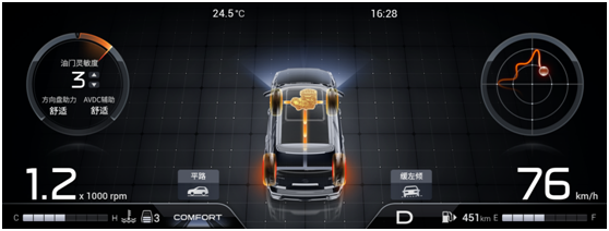 官方介绍,这是一个符合中国人特征的驾乘辅助系统,说白了就是按照国内消费者习惯对车辆传动系统、制动系统、发动机系统、车身电子系统、悬架系统和转向系统进行优化和整合。