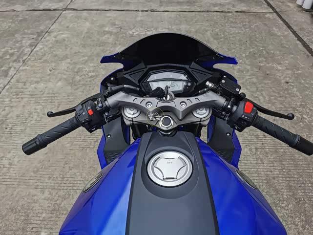 为了能让更多的人骑上,R25M根据国人的身高需求,座高已经从795mm降到现在的780mm。但是,原厂提供高座版本选择,选装竞技月牙套件,可将座高升高到820mm。