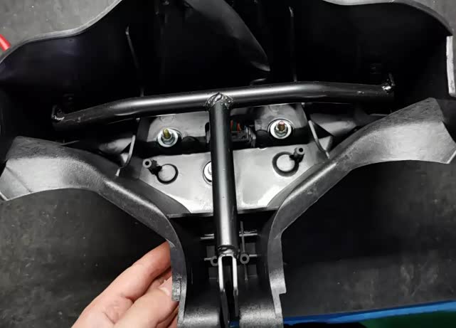 针对老车主反馈的车头异响和车头抖动、以及后视镜抖动的问题,针对这些问题R25M做出优化。重新设计了轻量化大灯支架,在重量更轻的同时还有更好的支撑作用和固定后视镜的作用,(R25无法升级,因为车架安装点不同)。
