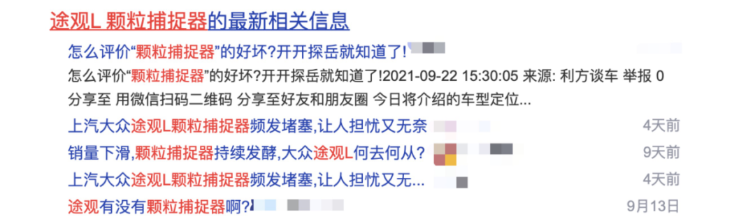 近来网上有很多途观L的车主反应车上的颗粒捕捉器频繁堵塞,堵塞后会导致车辆加速无力、油耗大幅升高。从各大网站和汽车质量投诉平台来看,出现问题的车辆数可能在数百台。
