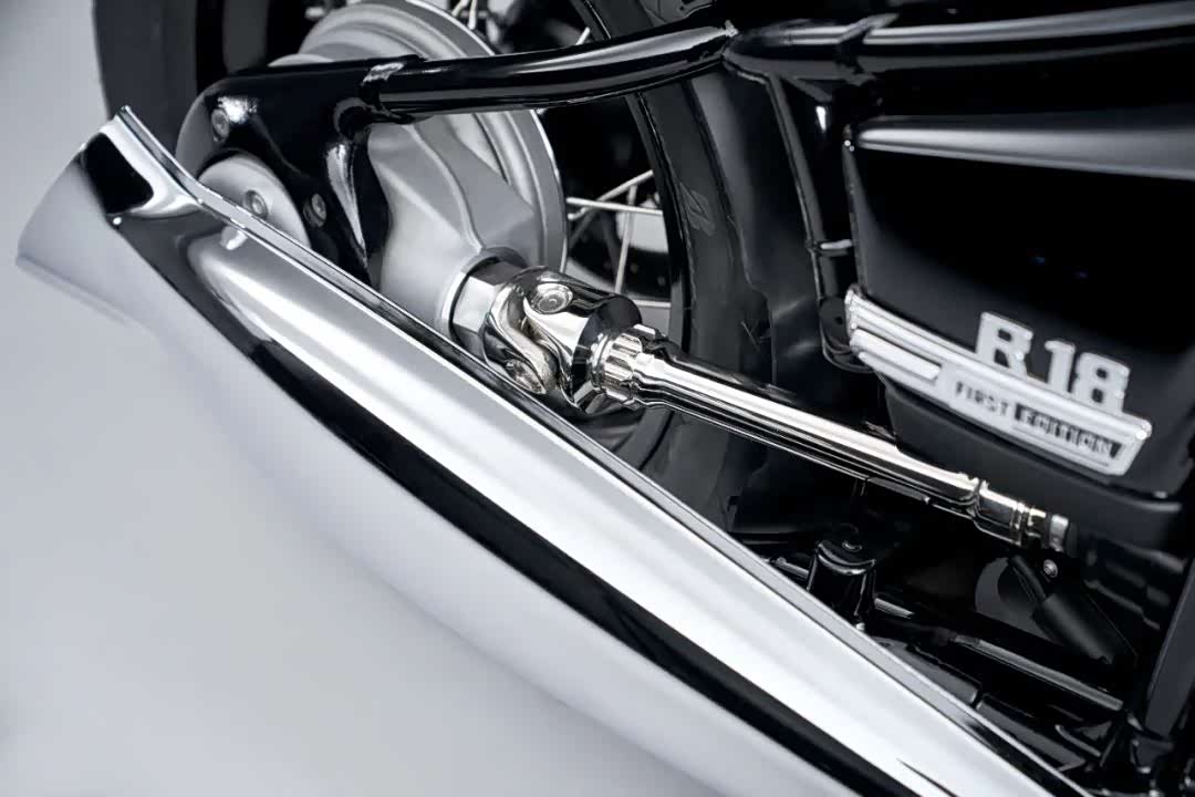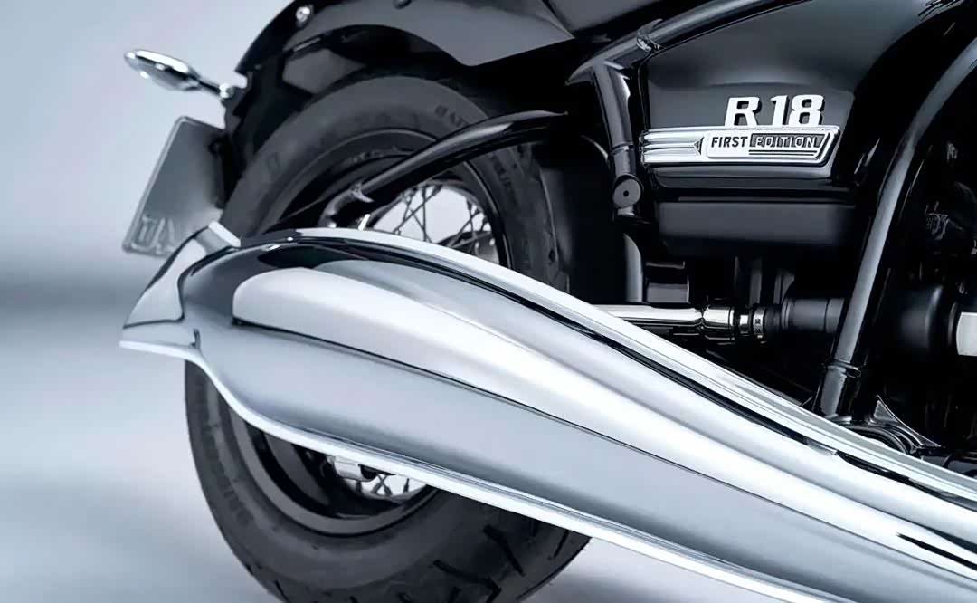 R 18配备了双边共两处的鱼尾型排气,修长的排气管让R 18的车身姿态更显霸气,在阳光下那种闪闪发光的质感,是复古巡航摩托车所具备的重要视觉元素。