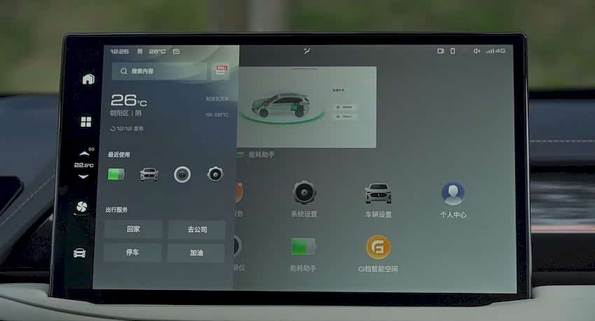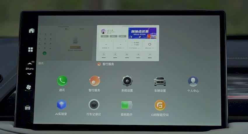 同样新意满满的还有G档智能空间,我们这辆试驾车还不是最终量产交付版本,里面包含游戏和冥想空间两个子功能,一动一静体验感受也都不错。另外,智行服务中包含了驾车出行时的常用功能,其中加油和停车缴费两项高频使用功能可一键车内完成,方便实用。