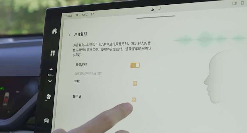 诸多功能按钮,AI实验室瞬间激起了我的好奇心,原来内部包含有诸多尚处于Beta版的新鲜科技供喜欢猎奇尝鲜的用户体验。比如「声音复刻」功能,可以将你的音色复制到车机中,我们实际体验了一次,虽然过程略显繁琐,合成效果也相比我的原声有点跑偏,但可玩性和新鲜感十足。此外,「AI实验室」中的功能,均可以通过用户体验按钮进行评分或吐槽,帮助厂家持续改进和优化,这种让用户实际参与新功能研发的尝试确实很有新意。
