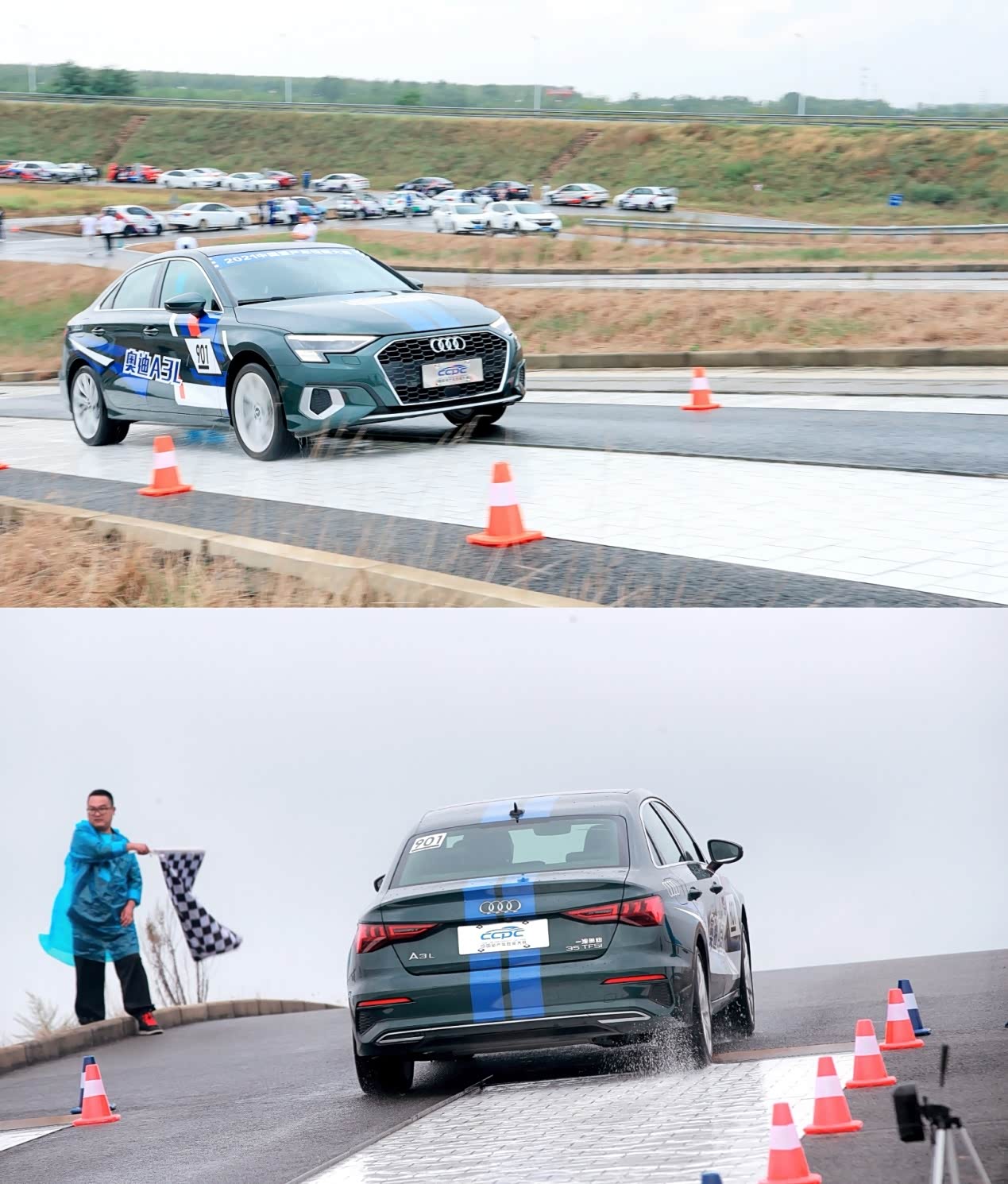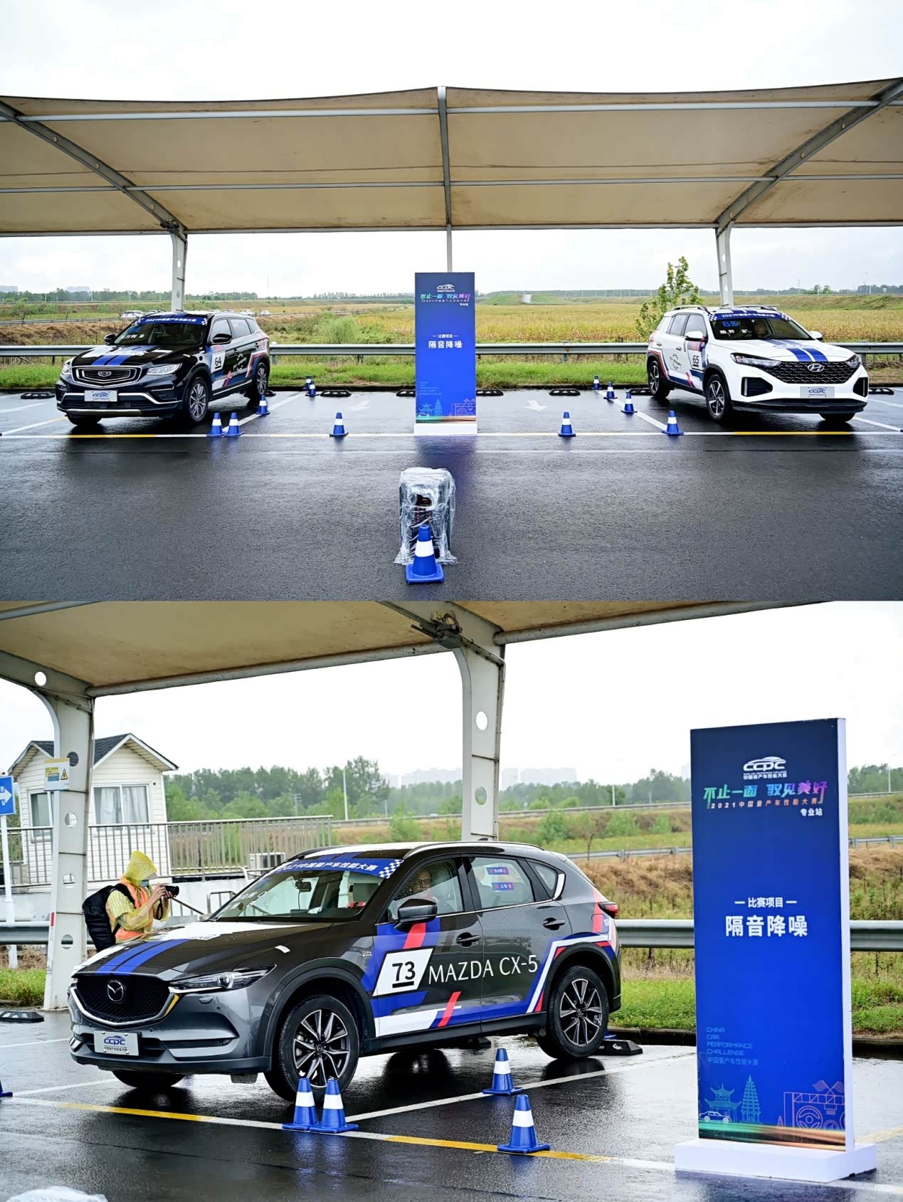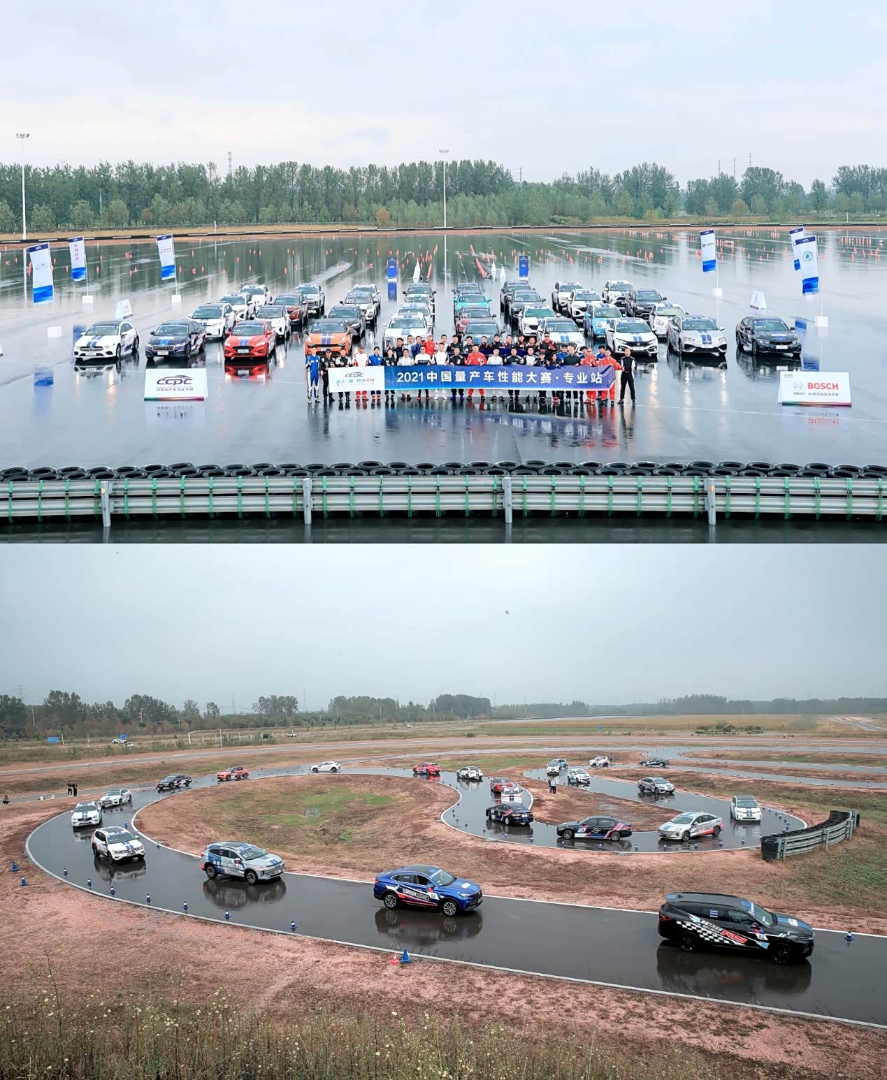 本次比赛汇集了32款来自不同品牌的车型参加,为确保公平,主办方将这些车分成了8个组别,在三天时间里轮流进行雨水路面制动、颠簸挑战、定圆绕桩、对开路面爬坡、赛道圈速计时等共九大科目测试。