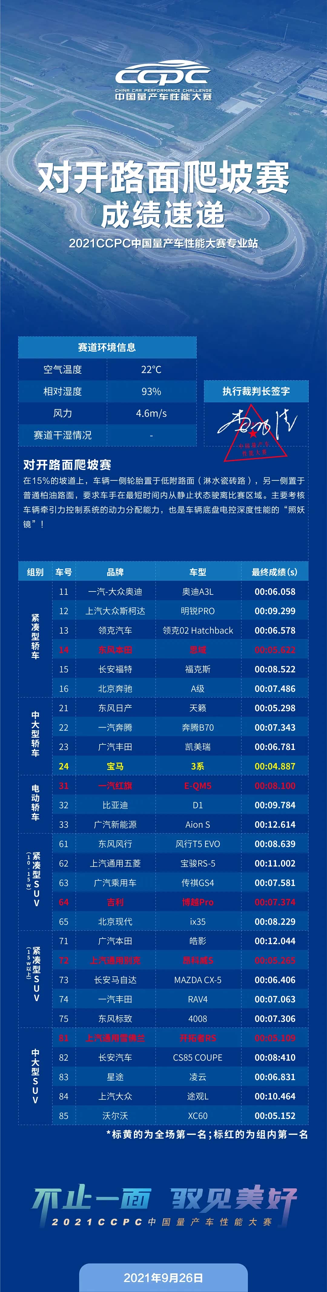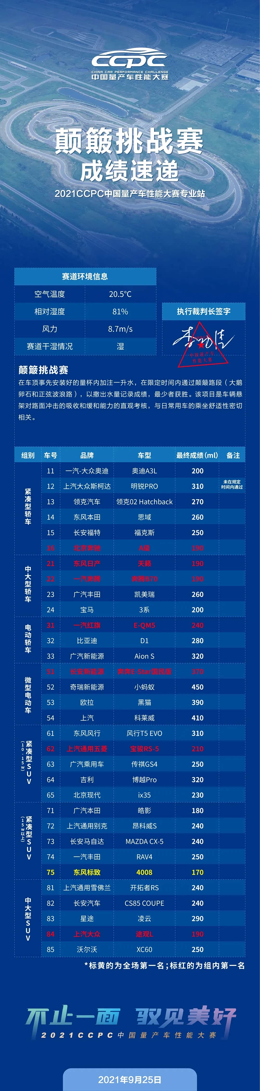 9月25日至27日,经过三天正赛角逐,2021 CCPC中国量产车性能大赛专业站比赛在博世(东海)汽车测试技术中心成功举办。