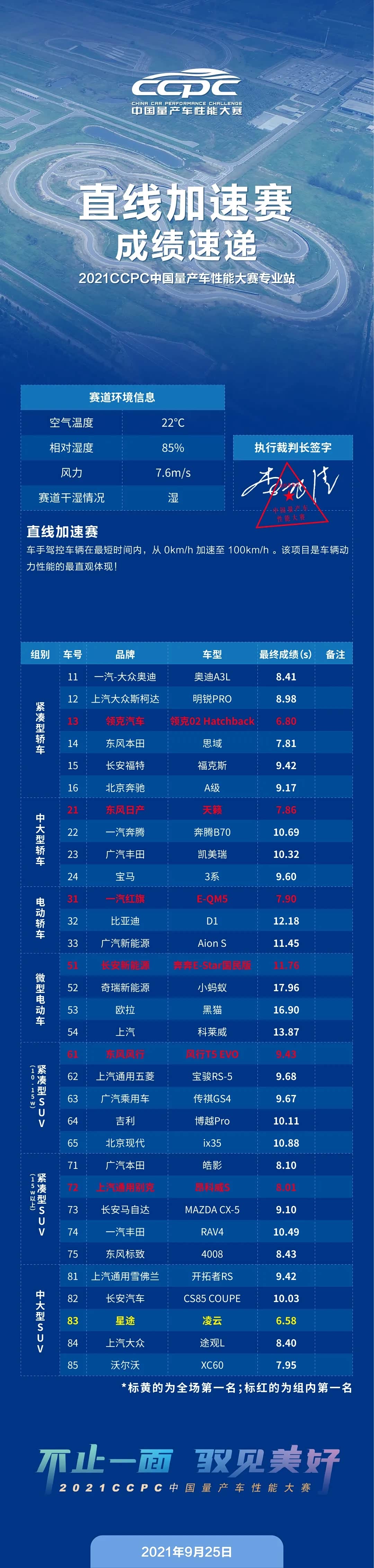 最终,星途凌云(2.0T版)以6.58秒的成绩位列总榜第一。