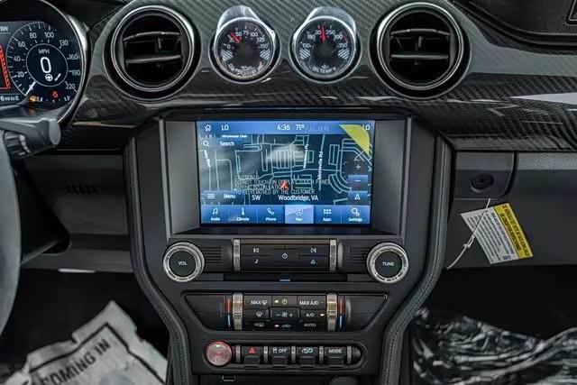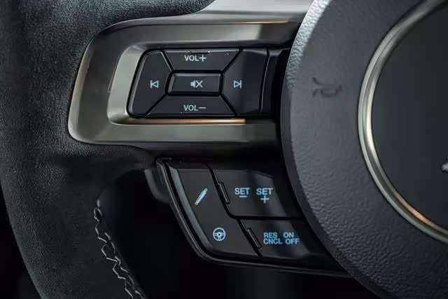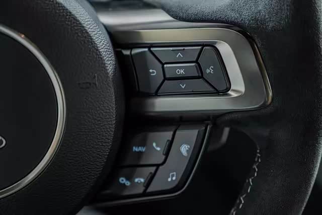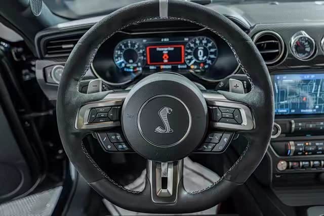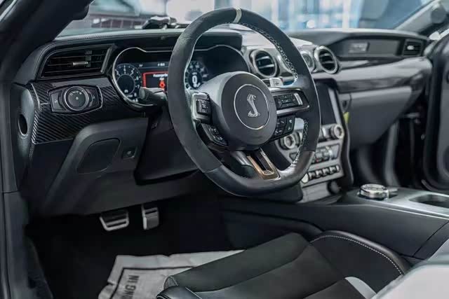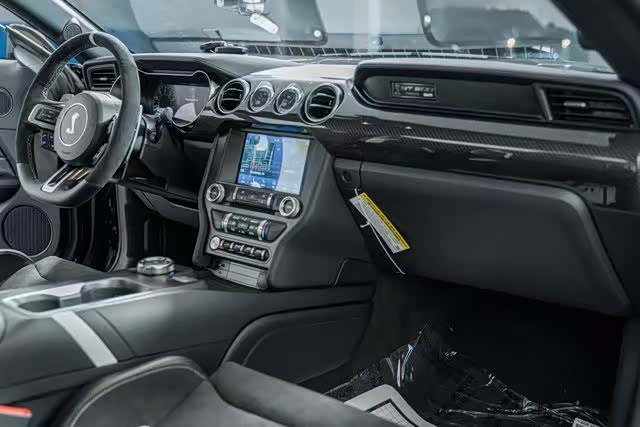 内饰的设计相对变化不大,依然采用了源自初代Mustang的左右对称式中控布局,多功能翻皮毛方向盘造型十分运动,中控屏幕设计时尚,此外,新车多处采用碳钎维纹理饰板设计,进一步增强了车内的运动气息。