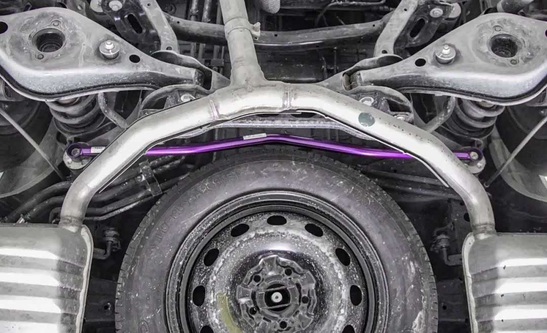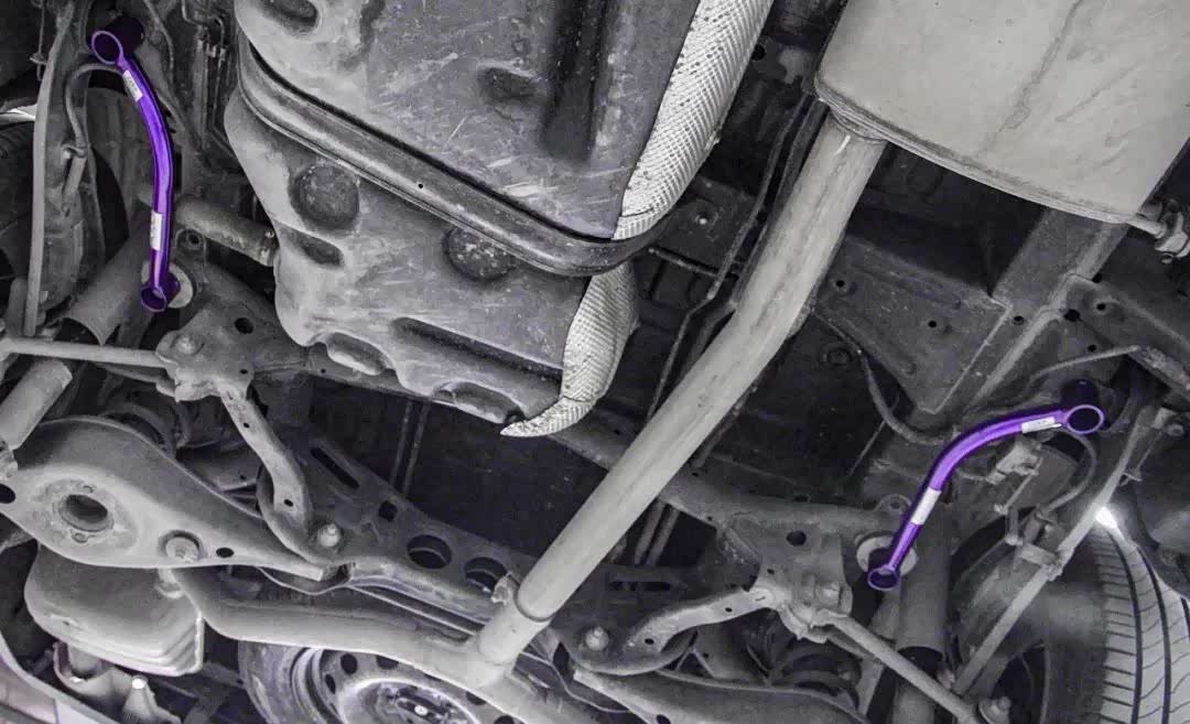 为了彻底达到“德系”硬朗底盘的效果,车主首先升级的是狮特底盘加强件五件套,其包含前顶吧、前下井字架、后下左右撑杆以及后下底拉杆。