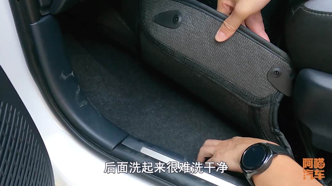 第五个,虽然脚垫会增加车内的污染,但是没有脚垫,由于下面植绒的绒布,你长时间用的话其实后面洗起来很难洗干净,而且显得很脏,所以估计绝大多数朋友都会选择用脚垫,但是脚垫的选择上,大家一定不要去买那种很廉价的脚垫。