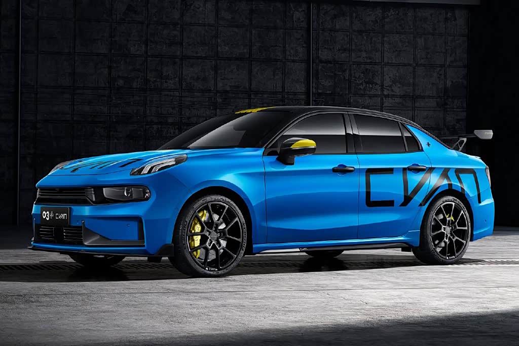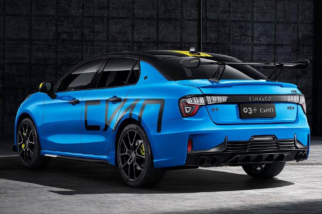领克03+Cyan定制版,蓝色涂装大尾翼,前脸分体大灯