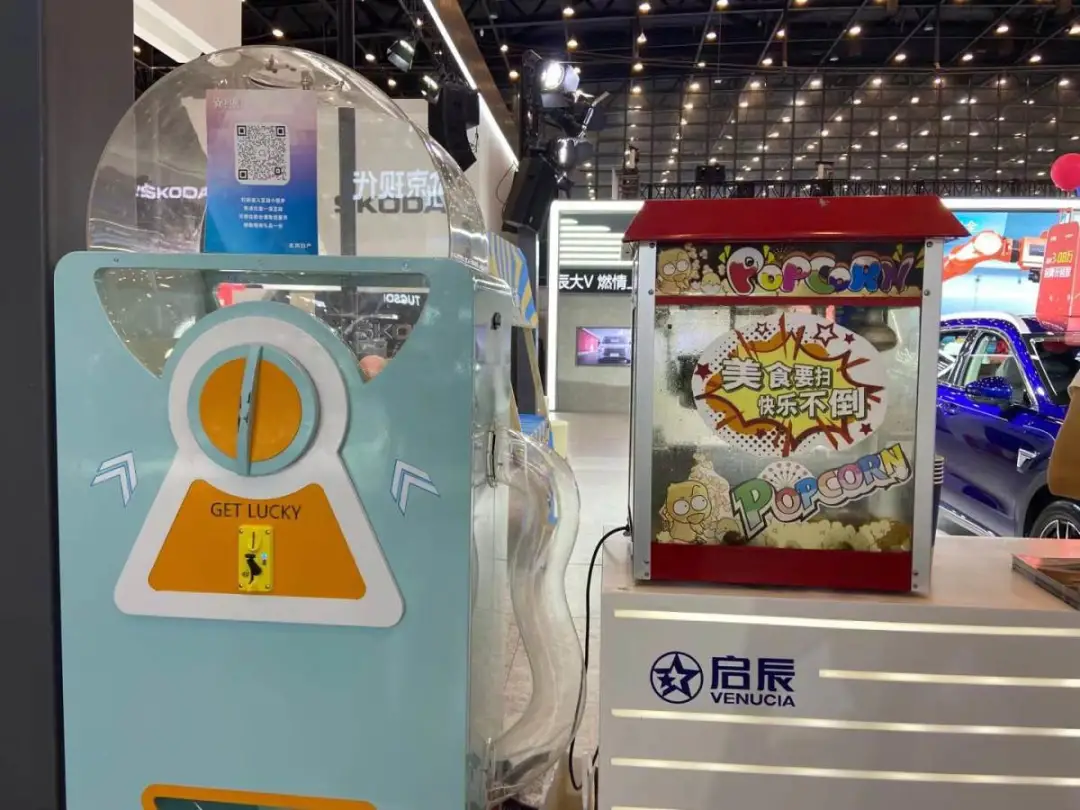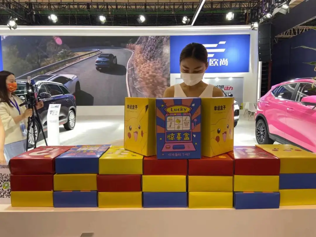 堪称本届车展宝藏展台,河南博物院联名盲盒、联盟冰淇淋、太空小熊盲盒、火车头汽水……惊喜不断