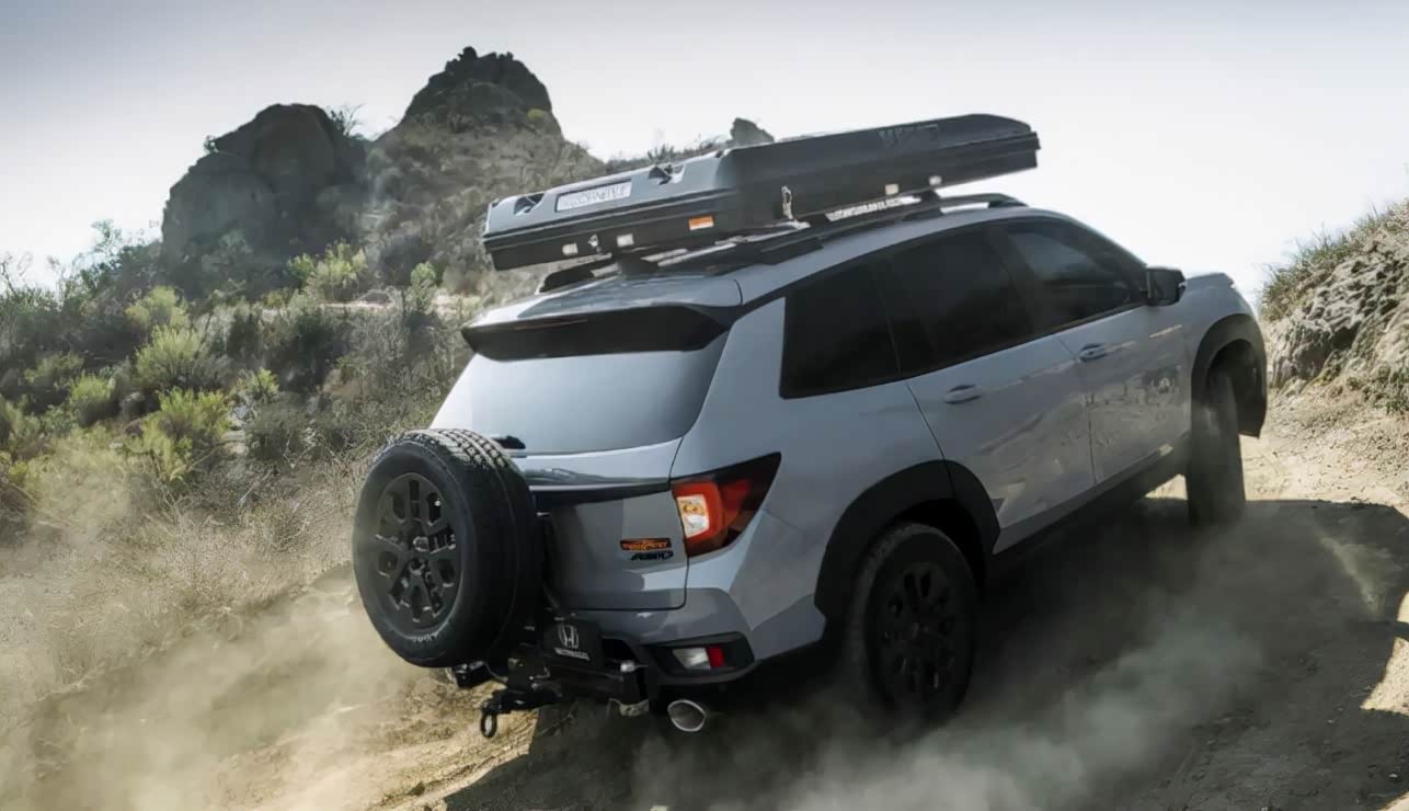 而且Passport TrailSport还有越野露营配件,例如车尾有一个备胎架,车顶还有帐篷,这就比较符合越野气质了,甚至有一点旅行车的感觉,对喜欢户外露营的朋友来说就非常难得了,车子在很多细节上做得确实很好,对年轻人来说是一款不错的好车子。