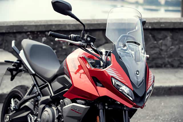 TIGER SPORT 660的外观与现款TIGER家族车型大不一样,车头线条比纯种ADVENTURE车型的TIGER 1200、TIGER 900更为运动,车头整流罩上搭配有手动调节的风挡,车身线条十分简洁,车尾配备了后扶手和边箱安装支架。