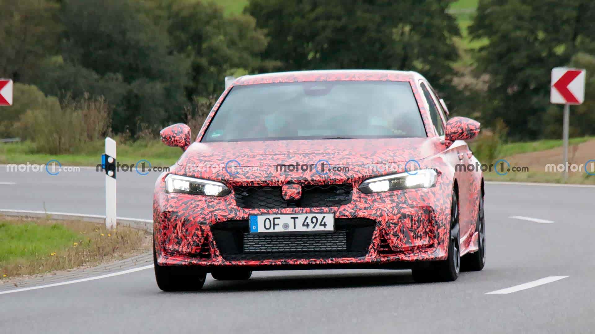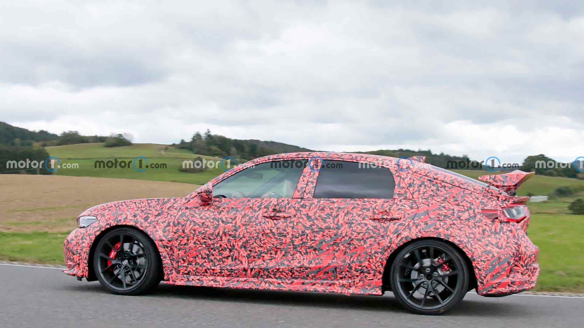 日前,有外媒曝光了一组本田全新思域TYPE R的测试谍照,这距离本田官方谍照的发布时隔不到两天。毫无意外的是,外媒所拍到的车辆伪装和之前的官方谍照完全一致,都是黑红迷彩的打扮,好不好看另说,识别度起码是拉满了。