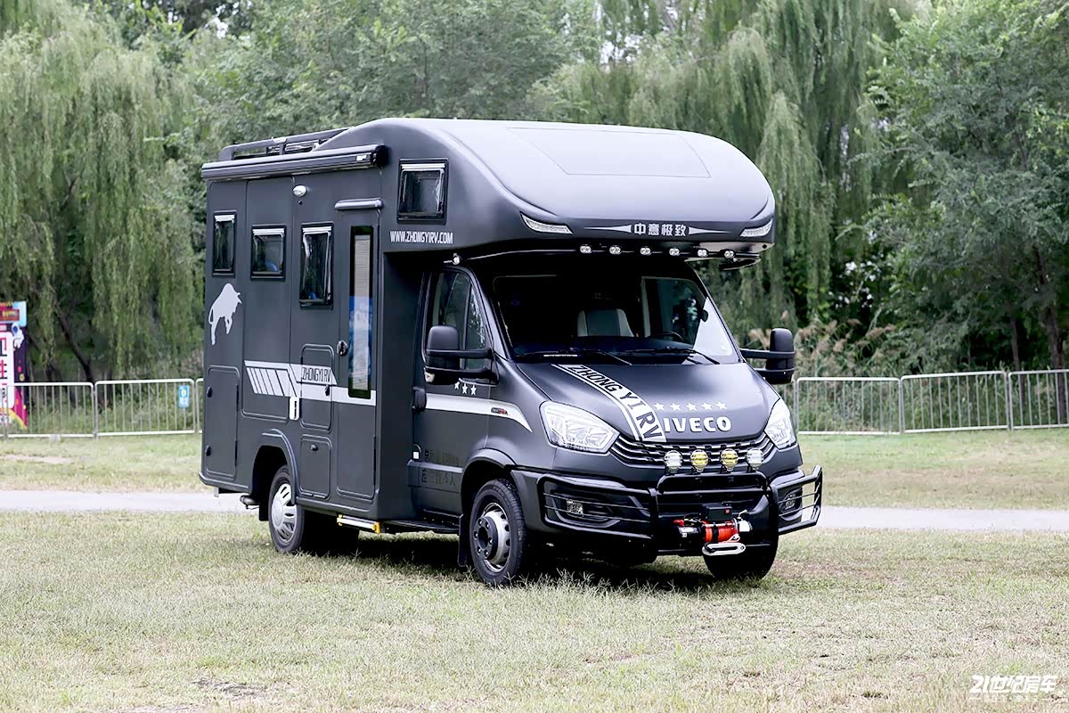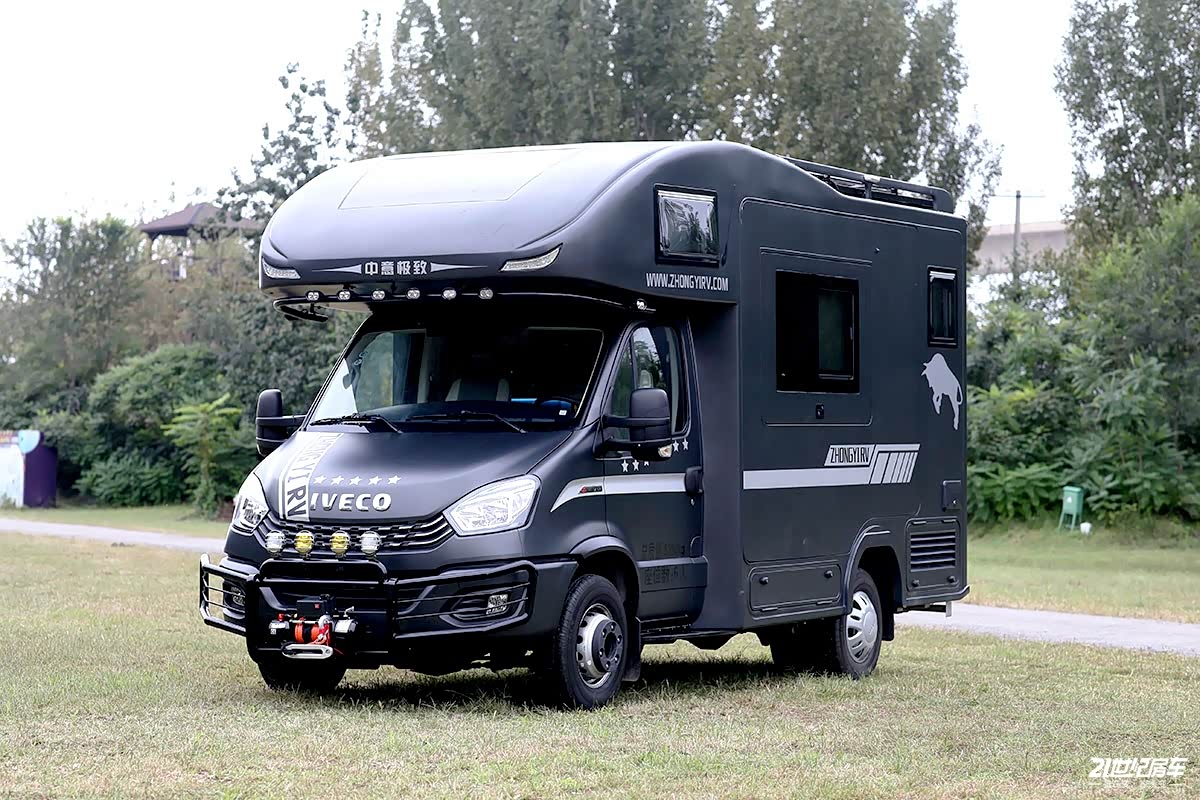 2022款中意极致双拓展专业版房车基于依维柯欧胜6.5T底盘打造,长宽高分别为5995×2320×3260(mm),轴距3300mm,总质量5380kg。整车采用的是高强度三明治复合结构,搭配铝合金墙板,内含有龙骨架。外观方面,前脸点阵式进气格栅更加倾向靠拢于进口依维柯New Daily车型外观,增添了一丝精神气,对于整体档次和视觉感官方面的确有较大的视觉冲击力,具有极高的辨识度,同时在所见之处车头细节部分做了更精细化的提升处理。