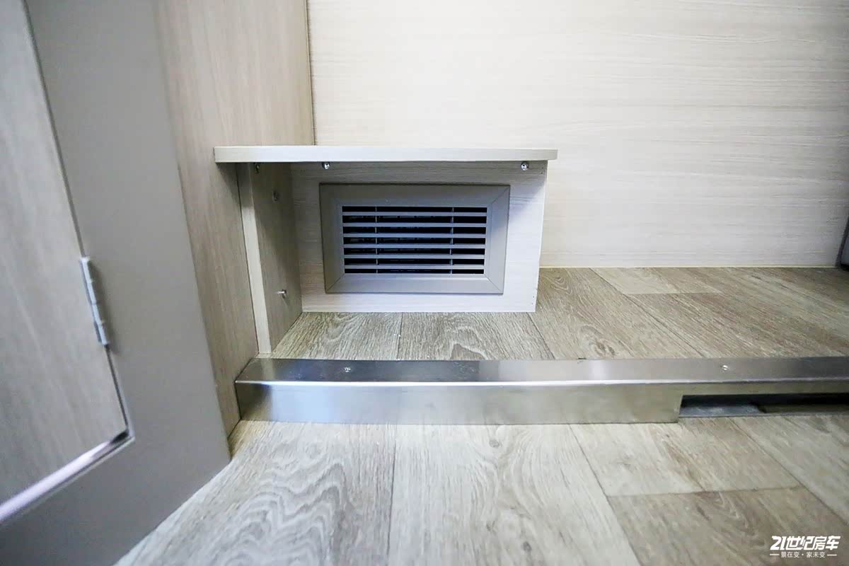 横置拓展床下方设有台阶,其内部是后行车暖风系统,保证车内前后温度差不会太大,冬天是也便于暖脚。