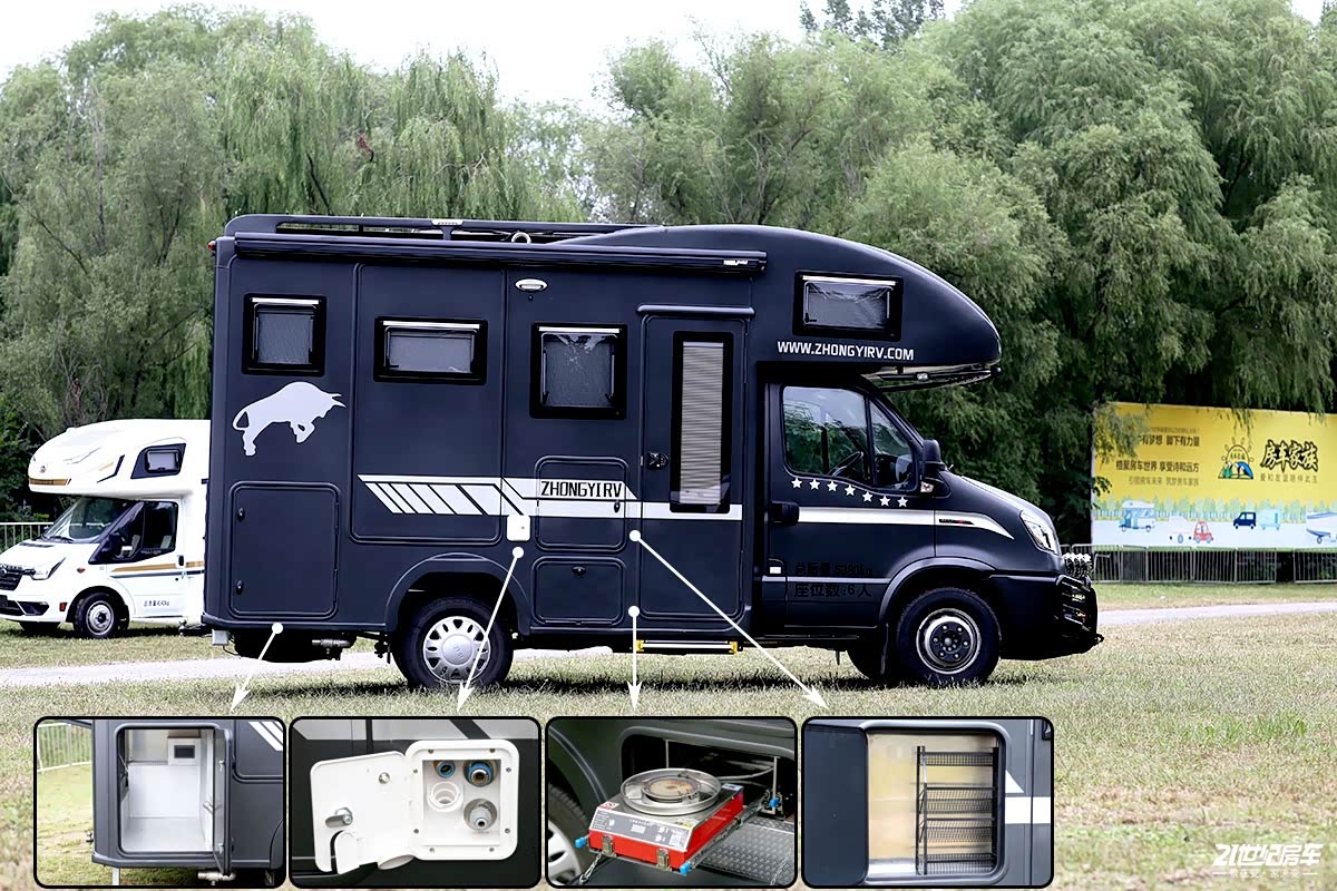大额头+双拓展布局设计看似和普通C型车大相径庭,但与市面上现有其它车型有着极大的不同之处。中意公司利用创新技术优势首创了可伸缩式卫生间,该项技术已获国家实用新型专利认证,并已经委托律师事务所对该专利进行专项知识产权保护;相较于传统的卫生间格局,这款可伸缩式卫生间无论在空间格局上还是密封性等方面都做到了极致;后双胎则让行驶途中提高稳定性,承载力也得到进一步加强;外观方面,配有手动遮阳棚、电动踏步、外置市电接口、注水口、外置抽拉厨房、外置淋浴花洒、外接电缆线盘等。