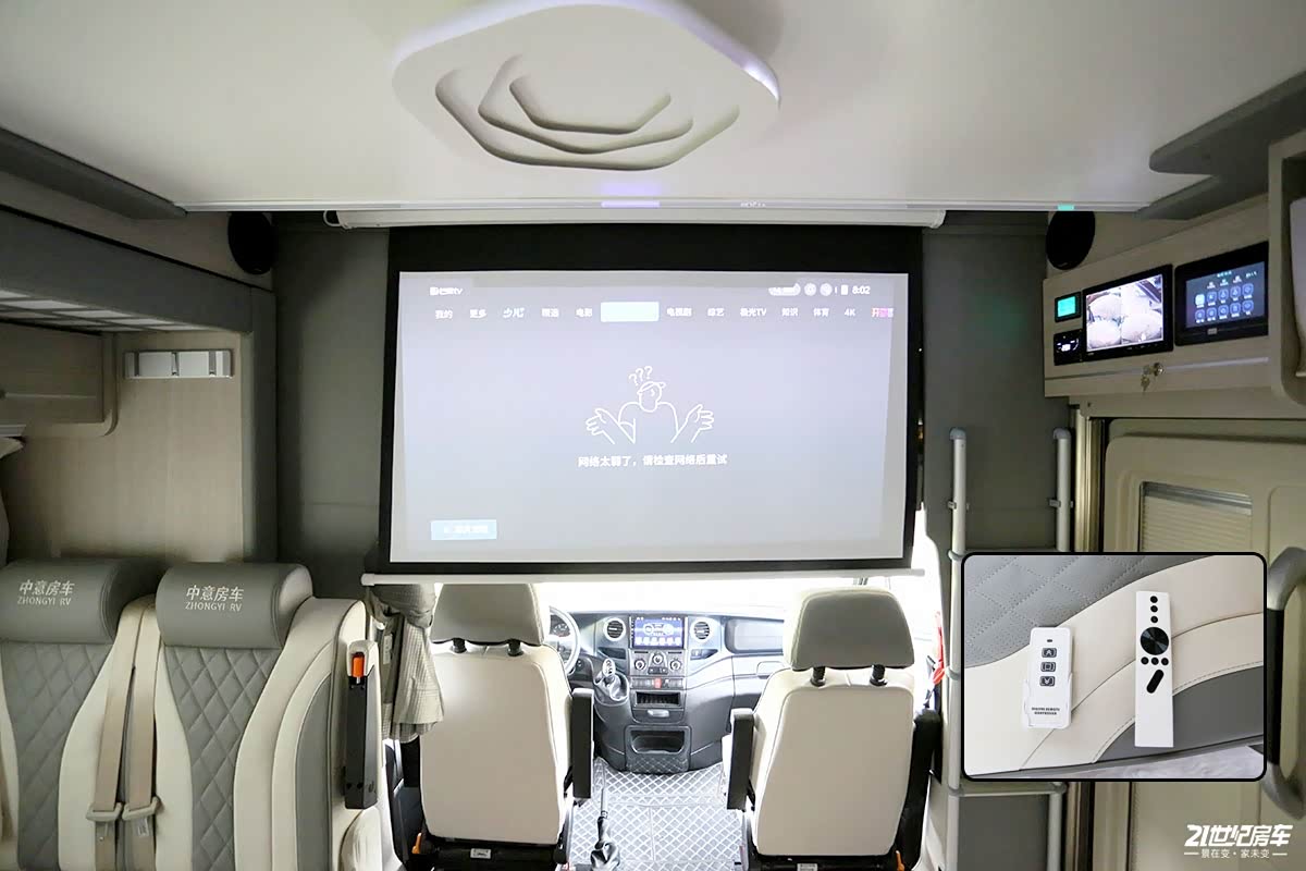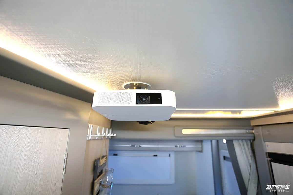 对于现在快餐式消费理念,用户对于快节奏的生活越来越依赖,日常手机、平板基本可以解决一切娱乐及观看需求,虽然携带方便,但由于屏幕尺寸小所以会影响观感体验,这款极致双拓展房车就为用户考虑到了这一点,生活区配备有1套极米投影仪及高保真4声道音响,投影幕布展开后可秒变私人影院,不会受到外界打扰,可以和亲朋好友一起沉浸在愉快的氛围中并欣赏着喜欢的电影。