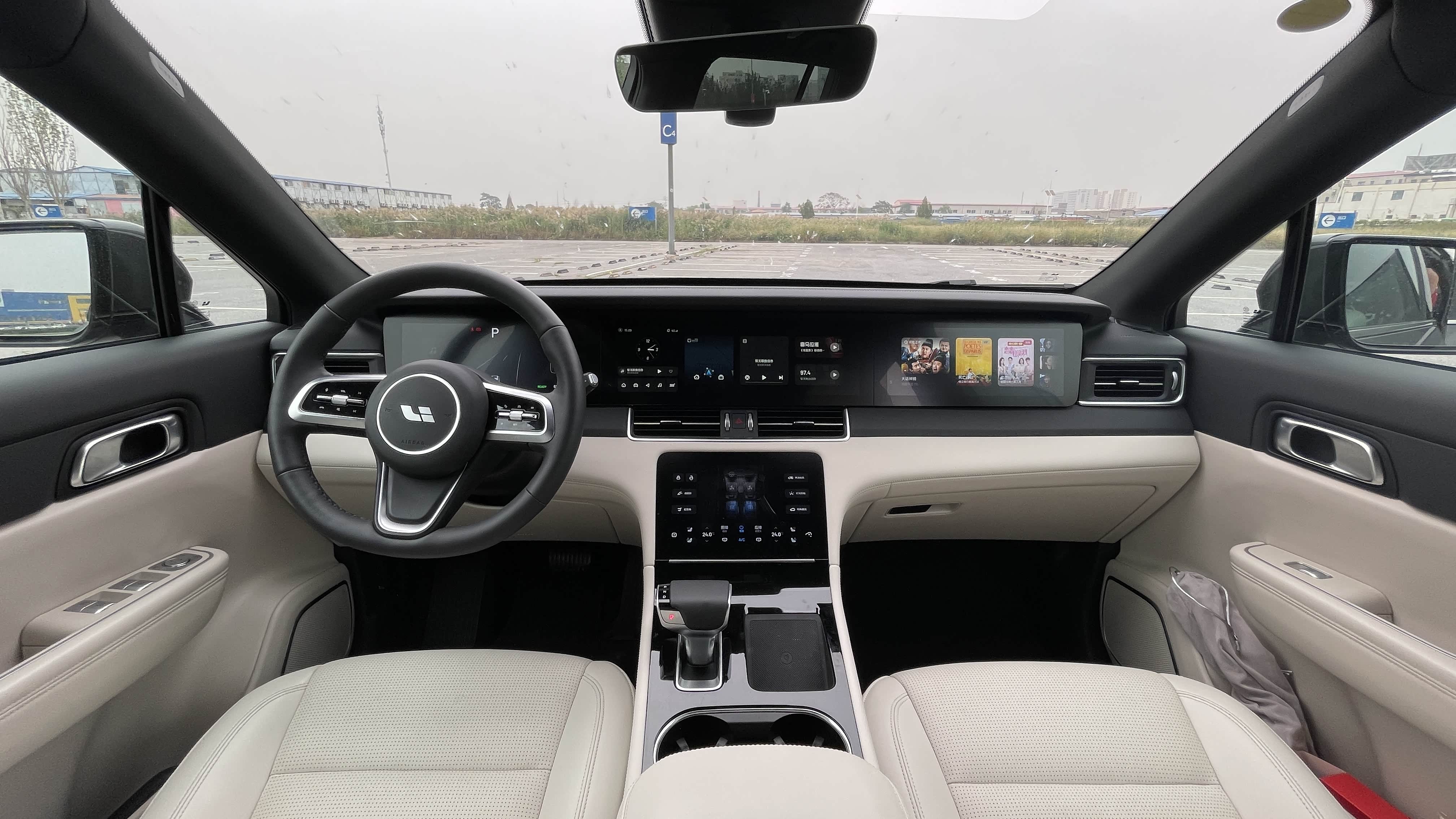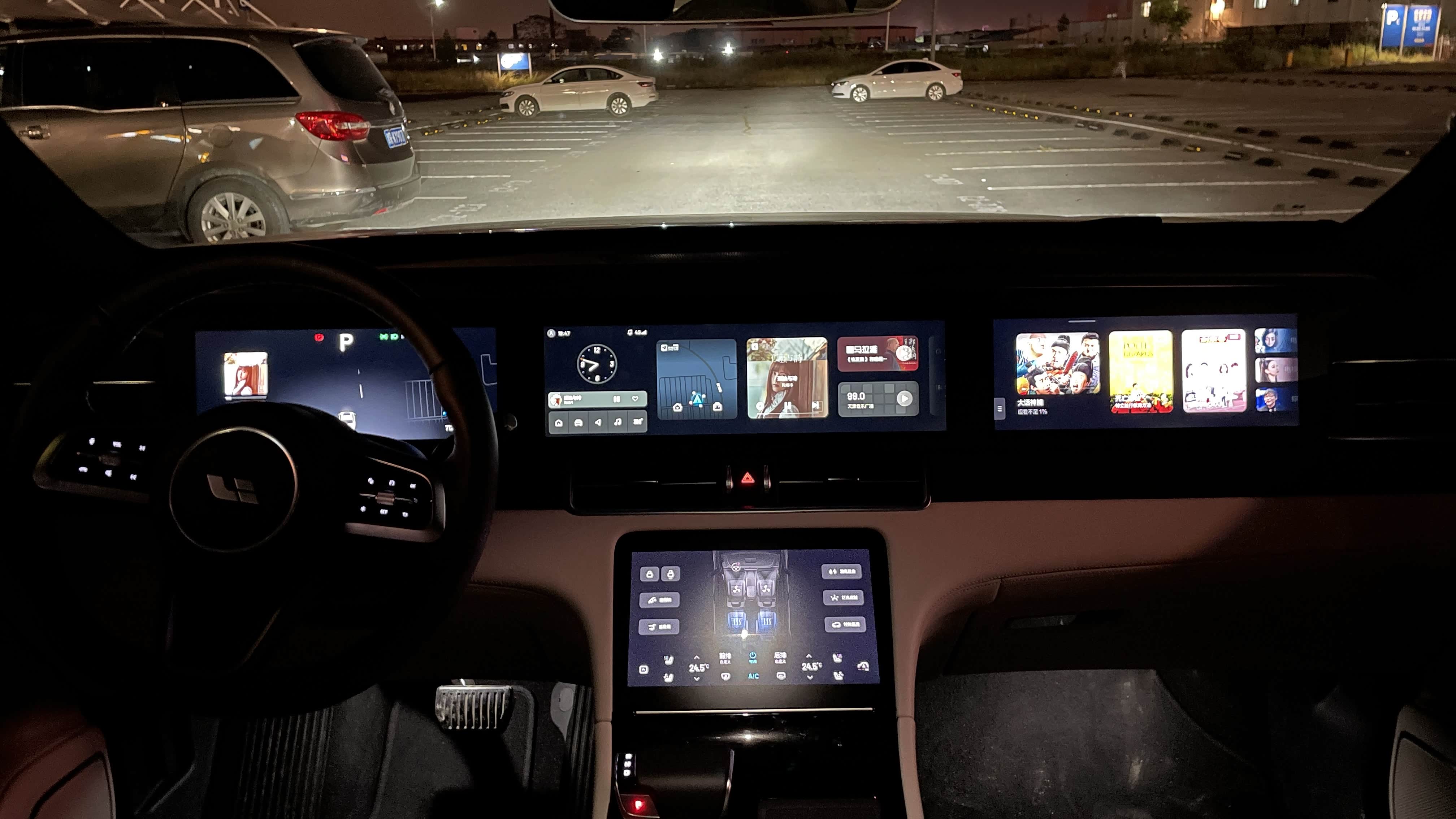 进入车内,看上去具有很好的科技氛围,大量软性材质包裹,体现出不错的豪华质感。三块连屏+T字区大屏的科技化设计,营造出很强的科技感。车内这4块大屏也都是以黑色为背景设计的UI,即使在夜间也不会让驾驶员有刺眼眩晕的感觉。