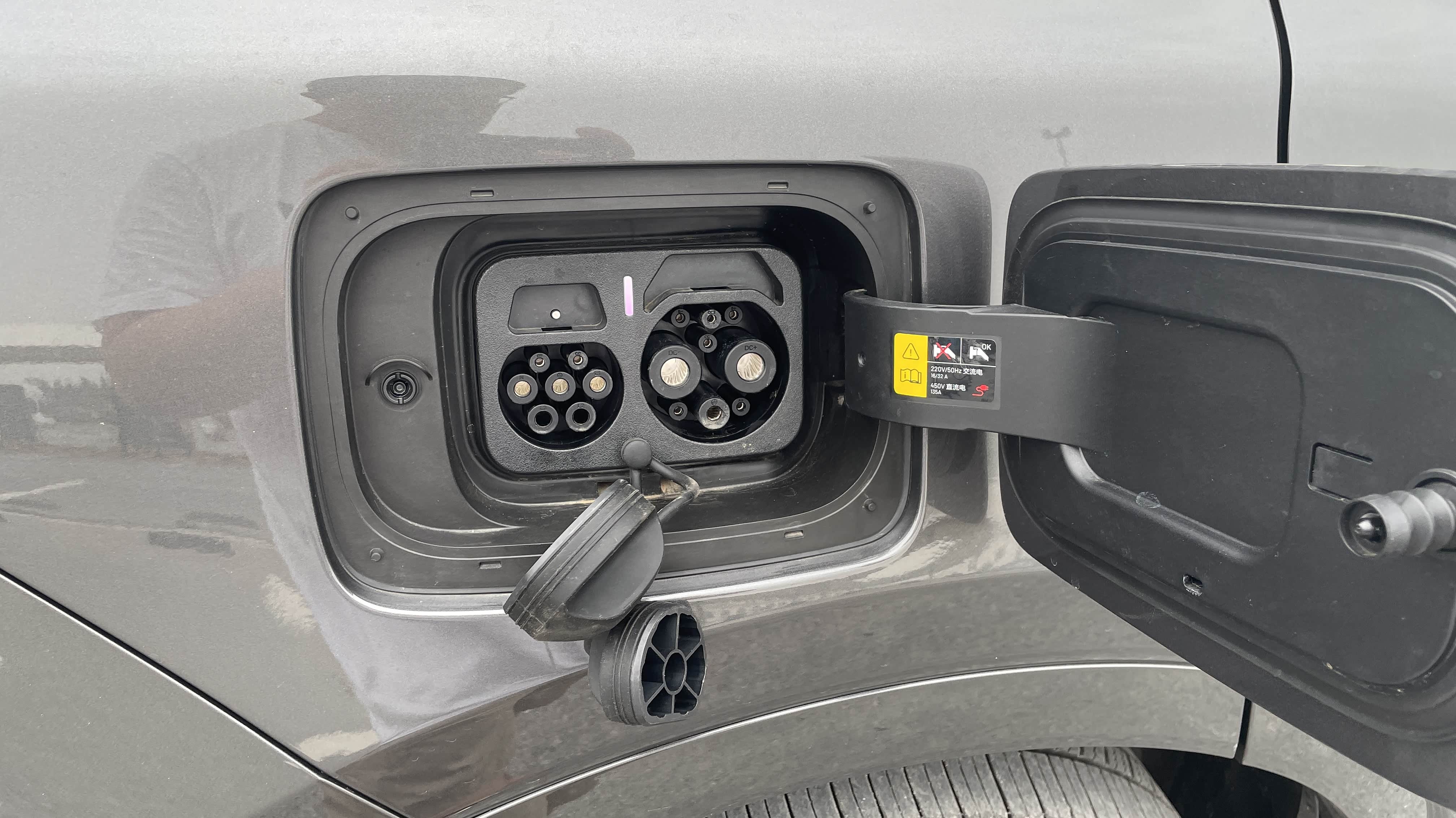 侧面基本与老款车型基本保持一致。依然在右后翼子板加入快慢充电接口,彰显新能源身份。