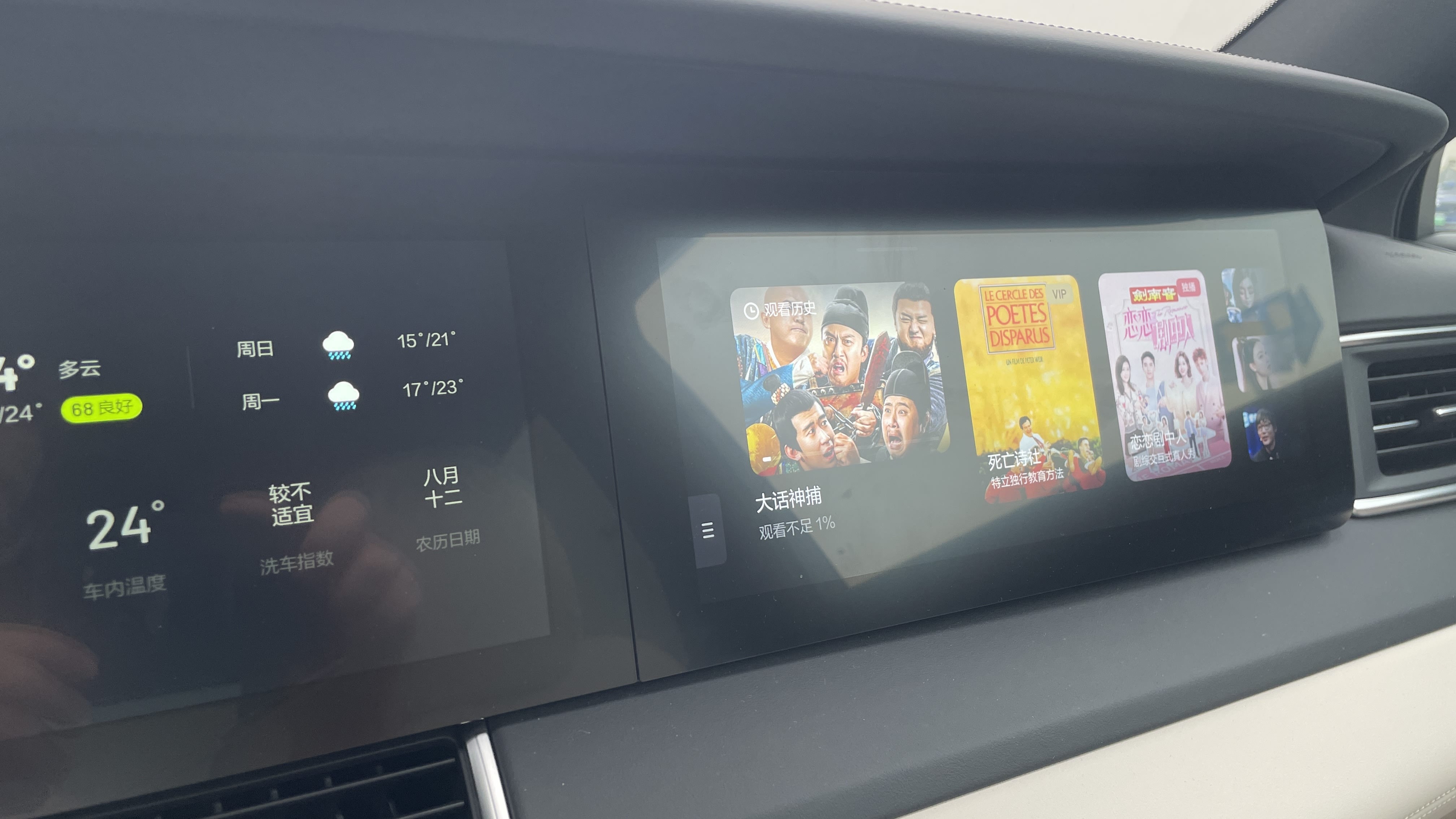 12.3英寸副驾驶触控屏内置爱奇艺车机版,乘客在车内随时可以看到最好看的影视娱乐节目。