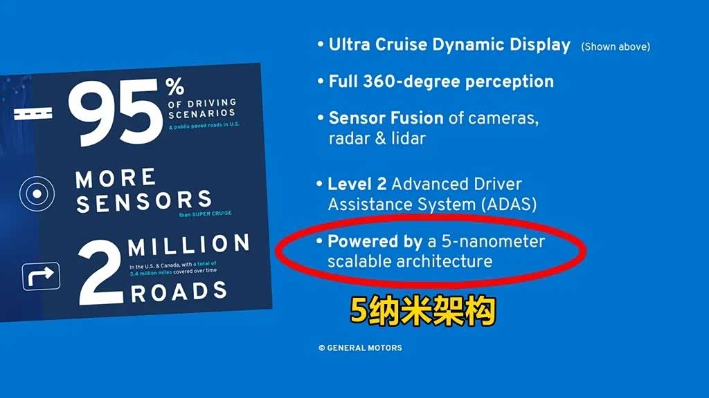 根据通用的说法,未来,Ultra Cruise的高精地图有望覆盖北美地区340万英里的铺装公路,目前则可以覆盖美国和加拿大超200万英里的铺装公路,并适用于“95%”的驾驶场景——如此一来,搞清楚剩下5%的场景反而变得更重要了,但是很遗憾,通用没说。