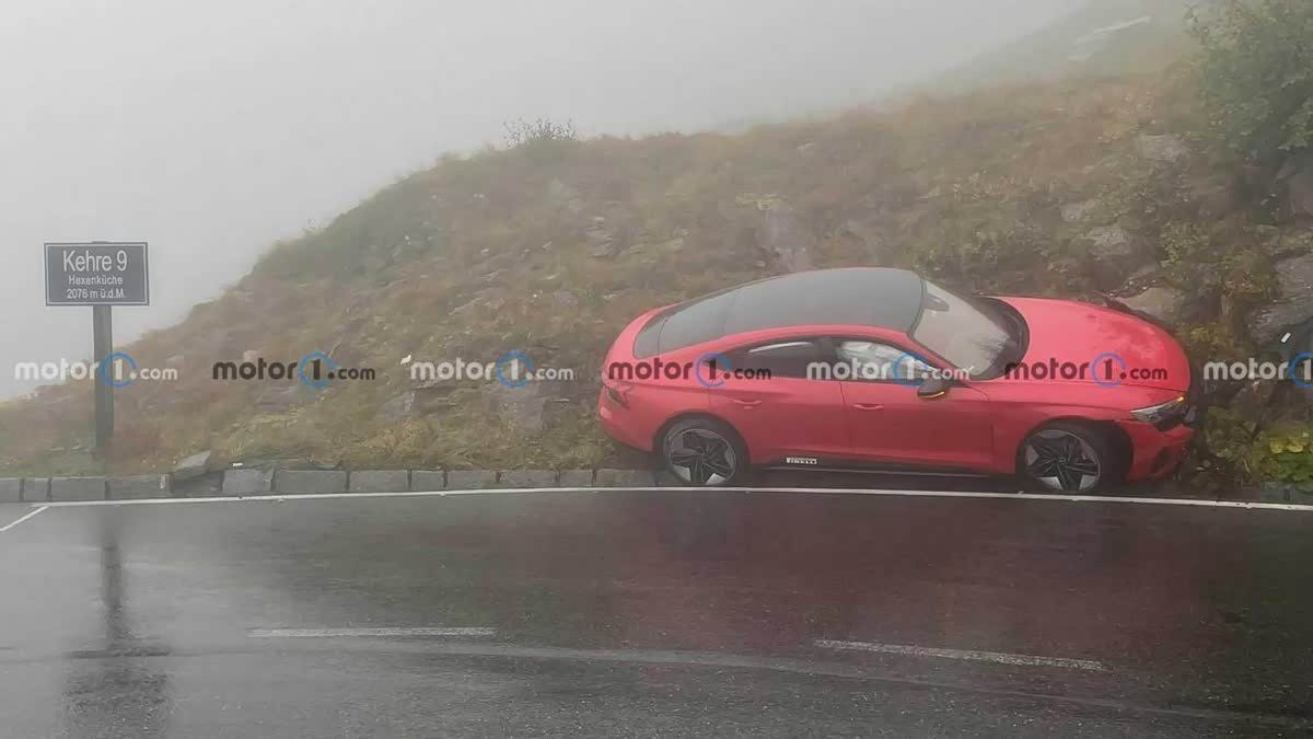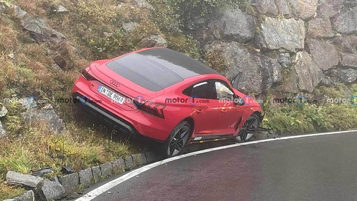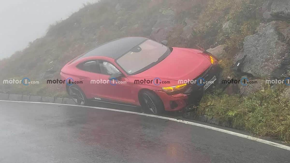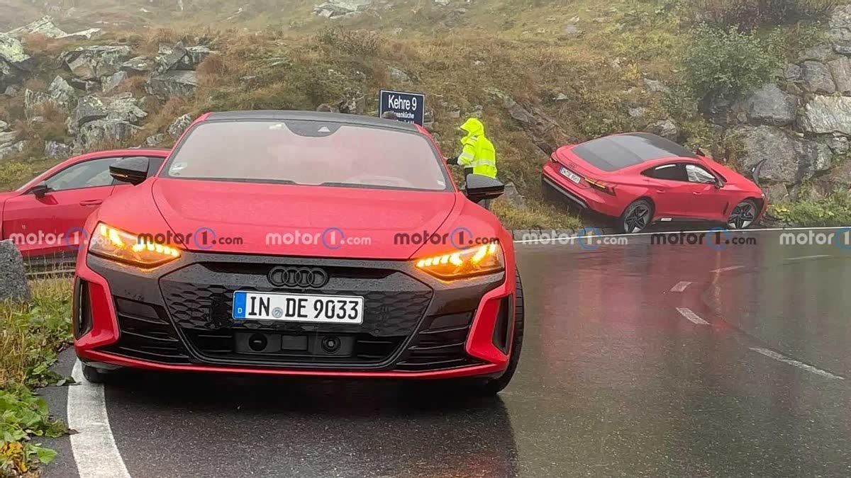 其中一张图片中的标志表明驾驶员位于海平面以上 2,076 米(6,811 英尺)。可以看到 奥迪RS E-Tron GT撞上了山体,虽然说损坏不太严重,但是也足以让安全气囊展开,唯一明显的损坏是在保险杠的下部,还是比较惊险。推测事故的原因是因为转向不足似乎导致 E-Tron GT 错过了弯道并撞上了山的一侧。