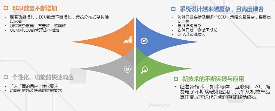 此外,汽车正在从传统的机械产品变成智能移动终端,无论是全生命周期内功能的迭代更新,还是个性化服务和响应速度,再次对ECU功能和数量提出新要求。