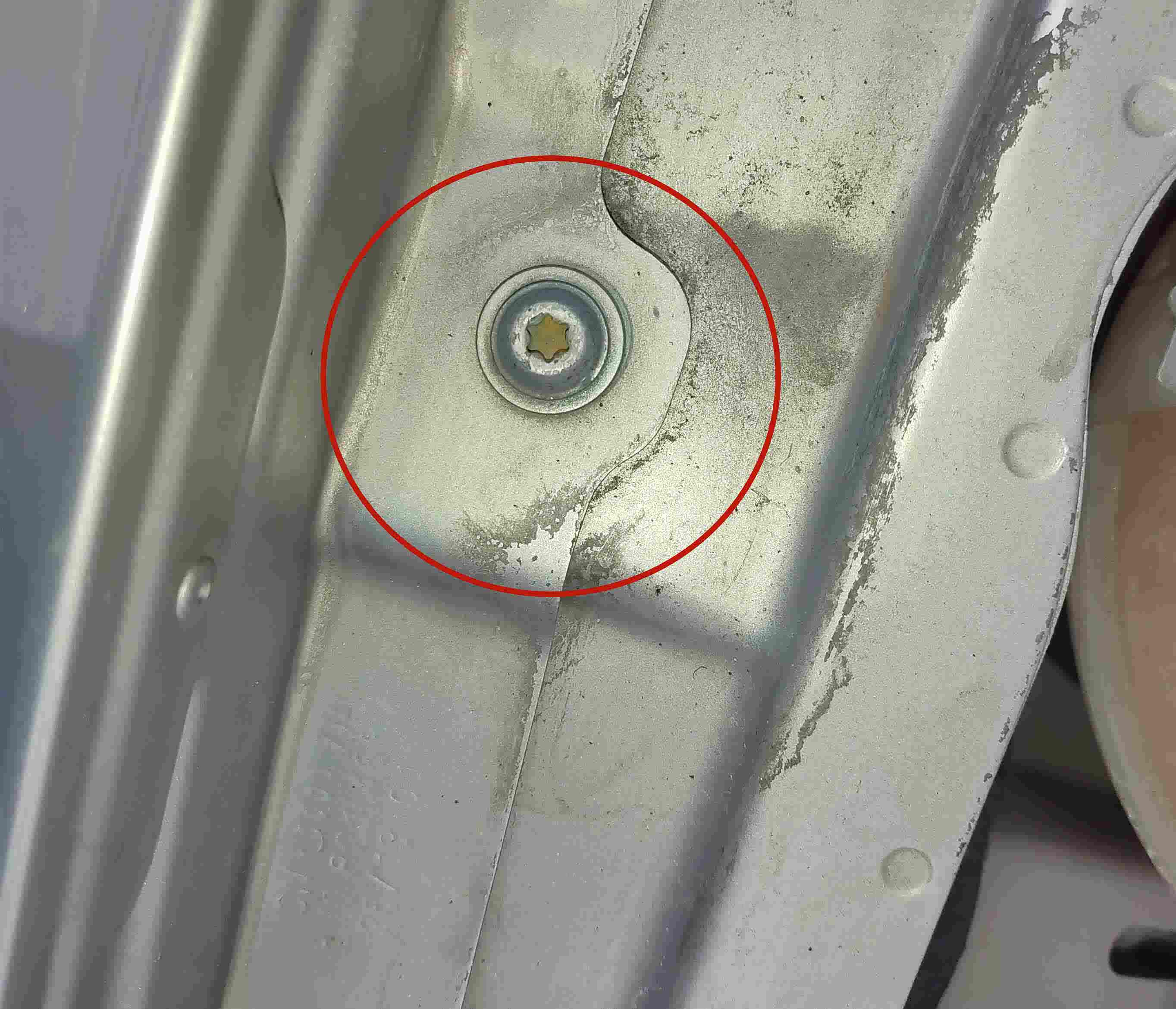 没办法,拗不过去就只能先看其它部位了,检查四个车门发现均存在拆装的痕迹,那在没发现侧边事故之前我们只能先默认车门的拆装是因为喷漆。