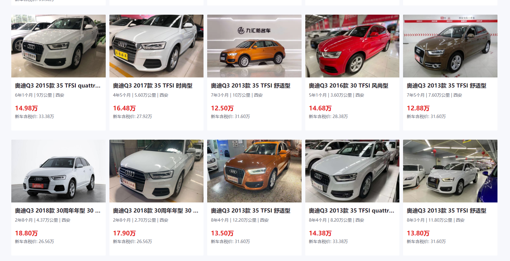 最后说下价格吧,今天看的这款奥迪Q3是2013款35TFSI的进取型(此款车的最低配),同年限的网上普遍报价13万元左右,当然这还是在车况好的前提下,而我们今天看的这台,14万的要价就不说了,就那车况,谁给你的自信?