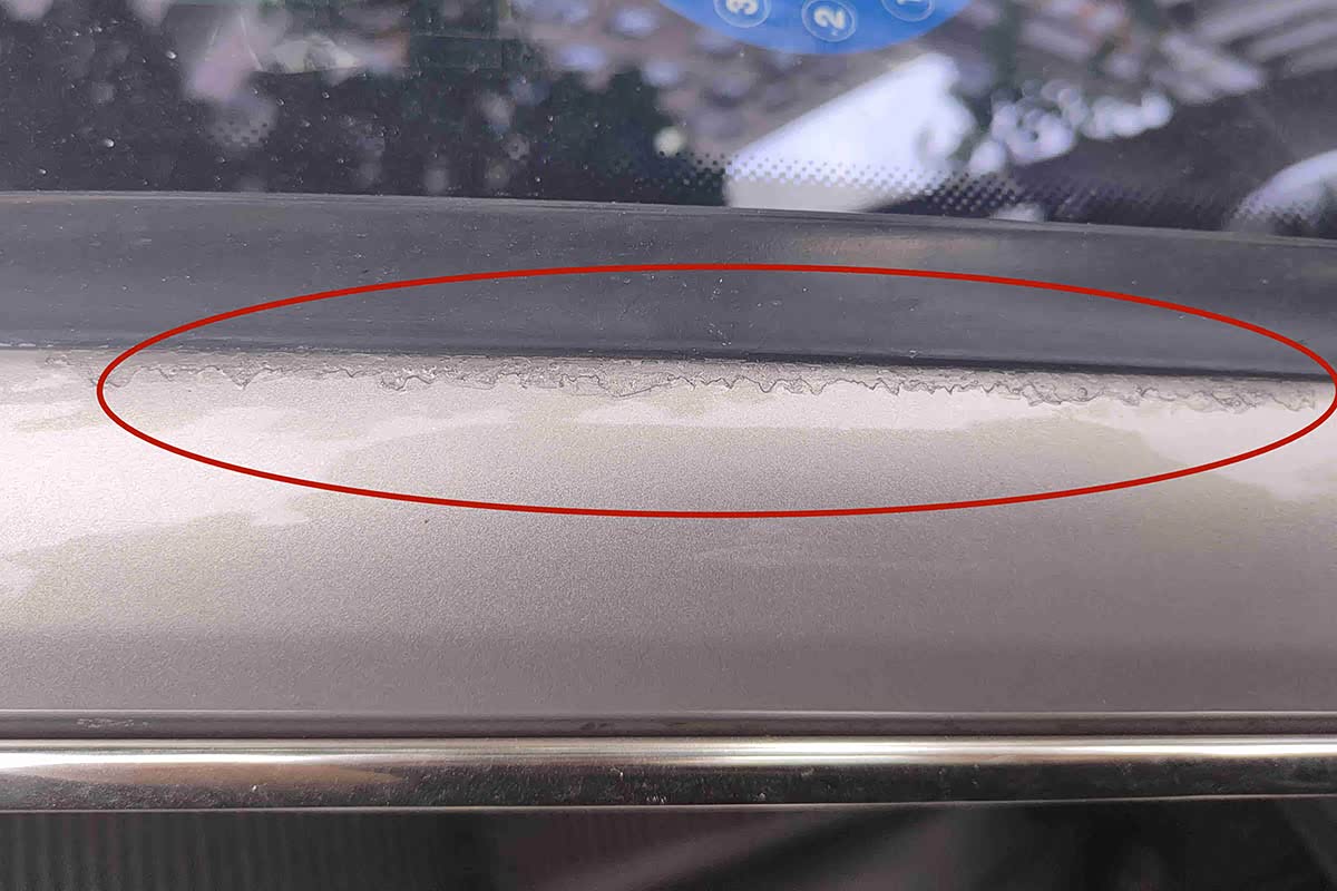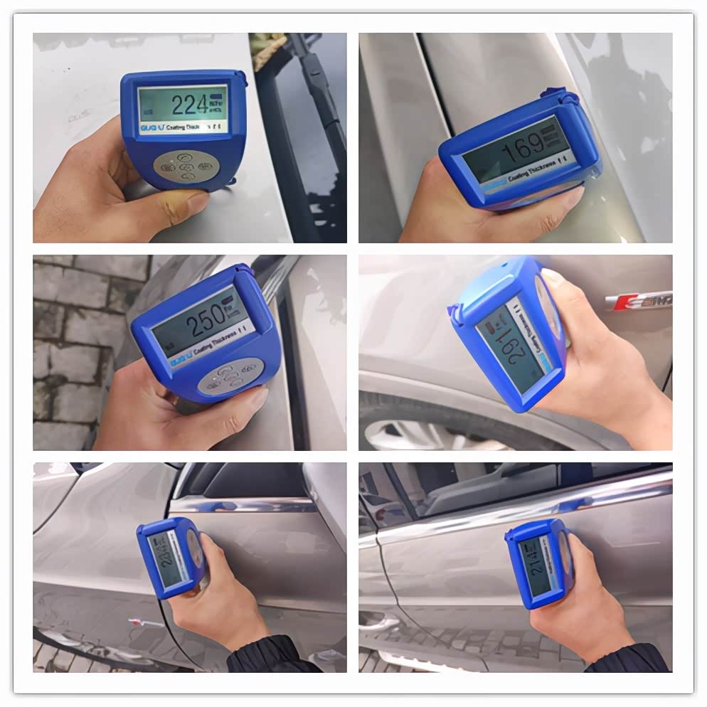饶了一整圈,大狗发现这车的外观都有后喷漆的痕迹,而且这做漆的水平也着实不咋地。下来我们用漆膜仪来验证一下刚才肉眼判断的结果↓