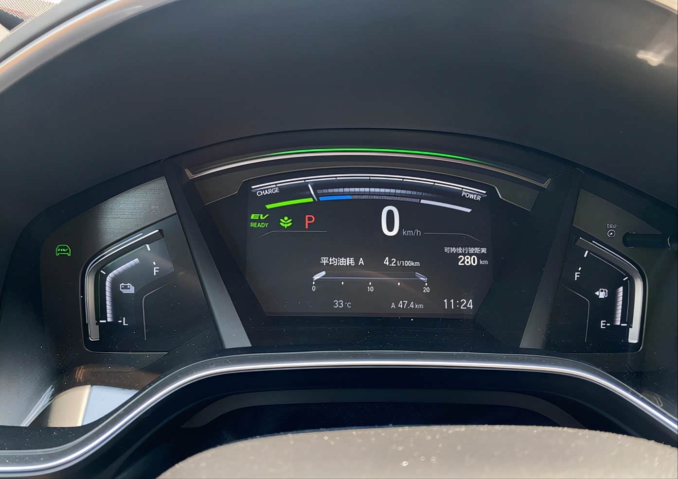 本田i-MMD的逻辑是以电驱动为主,因此皓影PHEV的动力输出特性与纯电动车非常相似。虽然车重增加了2-3百公斤,但感觉没有带来太多累赘,起步、提速如电动车般轻快平顺,不过我得说整体而言皓影PHEV绝对的性能不算很强;而SPORT模式会让前段的加速感强烈一点点,但80km/h后的加速能力明显变弱,这个特性与HEV版本相似。通过加大电机的功率或增加电机的数量,一些PHEV车型已经被打造成“高性能版”,相比之下皓影PHEV的性能就平淡了些。