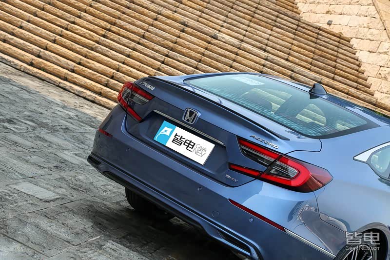 黑化幻夜版的核心就在于黑化,这个版本的尾灯、后保险杠饰条进行了黑化处理,看起来也比现款有质感得多。整个C字型尾灯都能亮起来,并且拥有光纤质感,混动尾标也换成了新款的e:HEV铭牌。