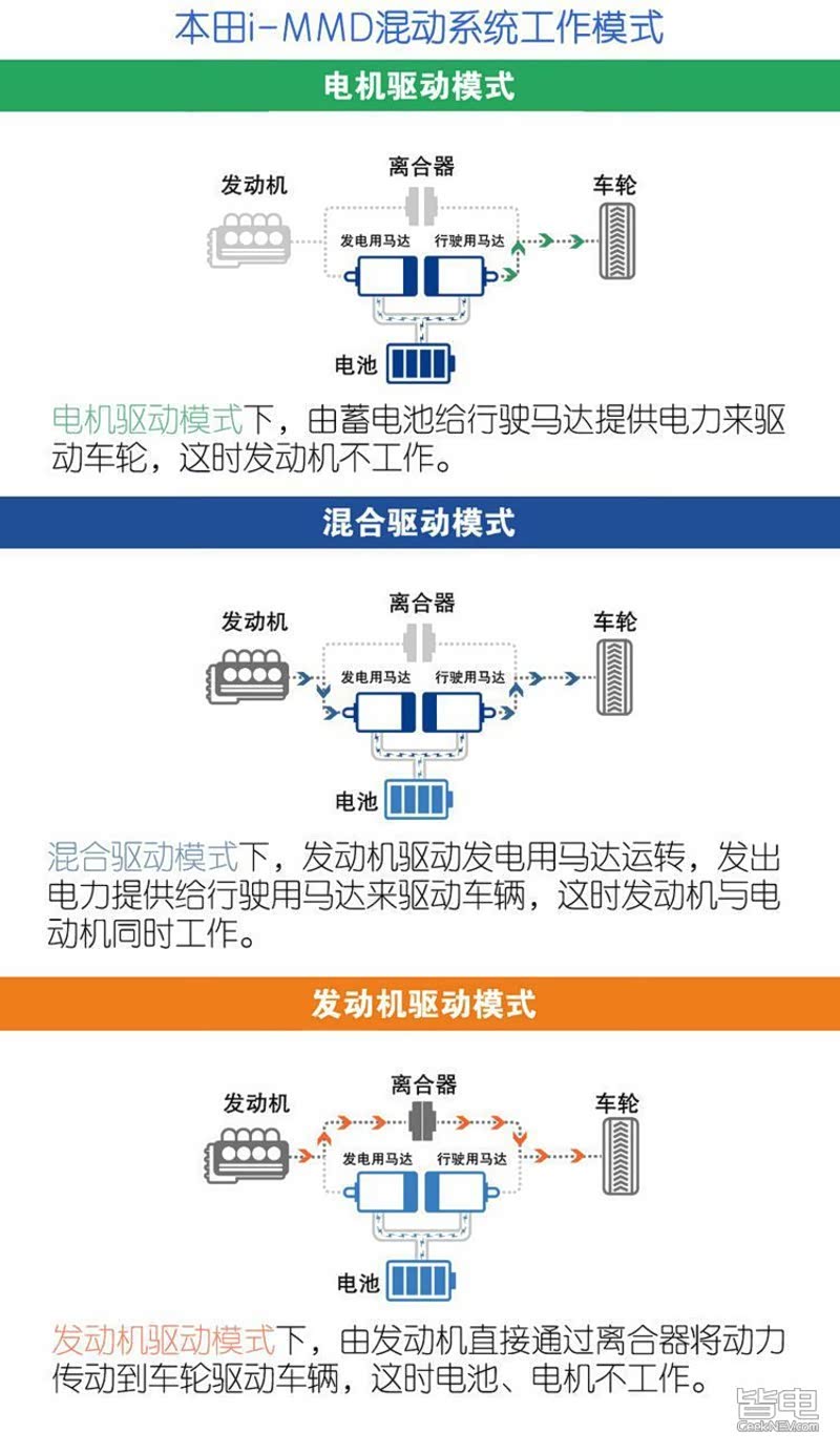 在逻辑上,i-MMD很像增程式系统,发动机规避了低效率区间,同时还能一直保持在最高效的运转区间进行发电。但和增程式相比,i-MMD还支持发动机直驱模式,在高速巡航工况下,发动机与车轮之间的离合器将结合,从而驱动车辆行驶。