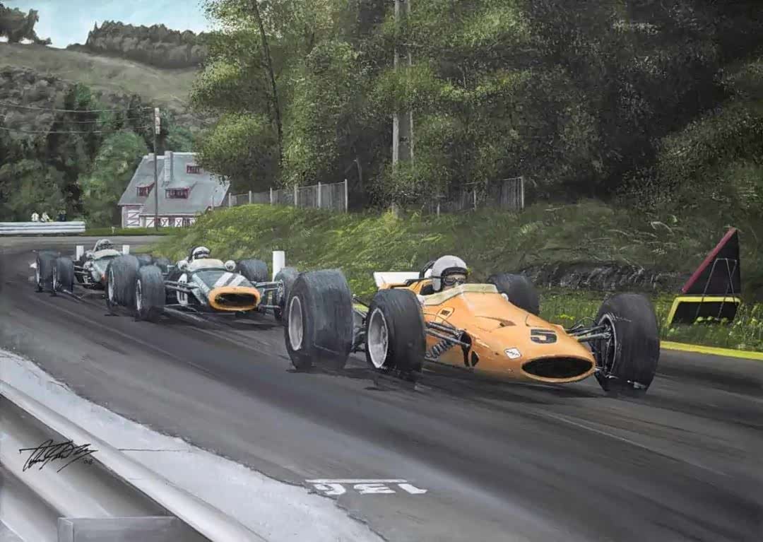 1969年,迈凯伦车队包揽该赛季CanAm赛事全部11场的桂冠,布鲁斯获得年度冠军。
