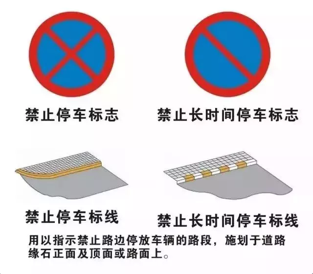 提醒:在有以下标志标线的路段停车,即使你打了双闪+人不离车,照样处罚。